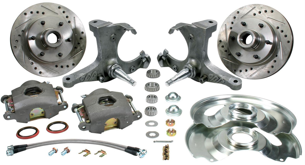 Classic Performance stock spindle brake kits will provide you with new spindles, to improve braking performance. These kits include calipers, rotors, lines, spindles, and all necessary hardware. Classic performance stock height spindles are made from high-quality ductile iron and have a CNC-machined 4130 chromoly pin.Brand: Classic Performance