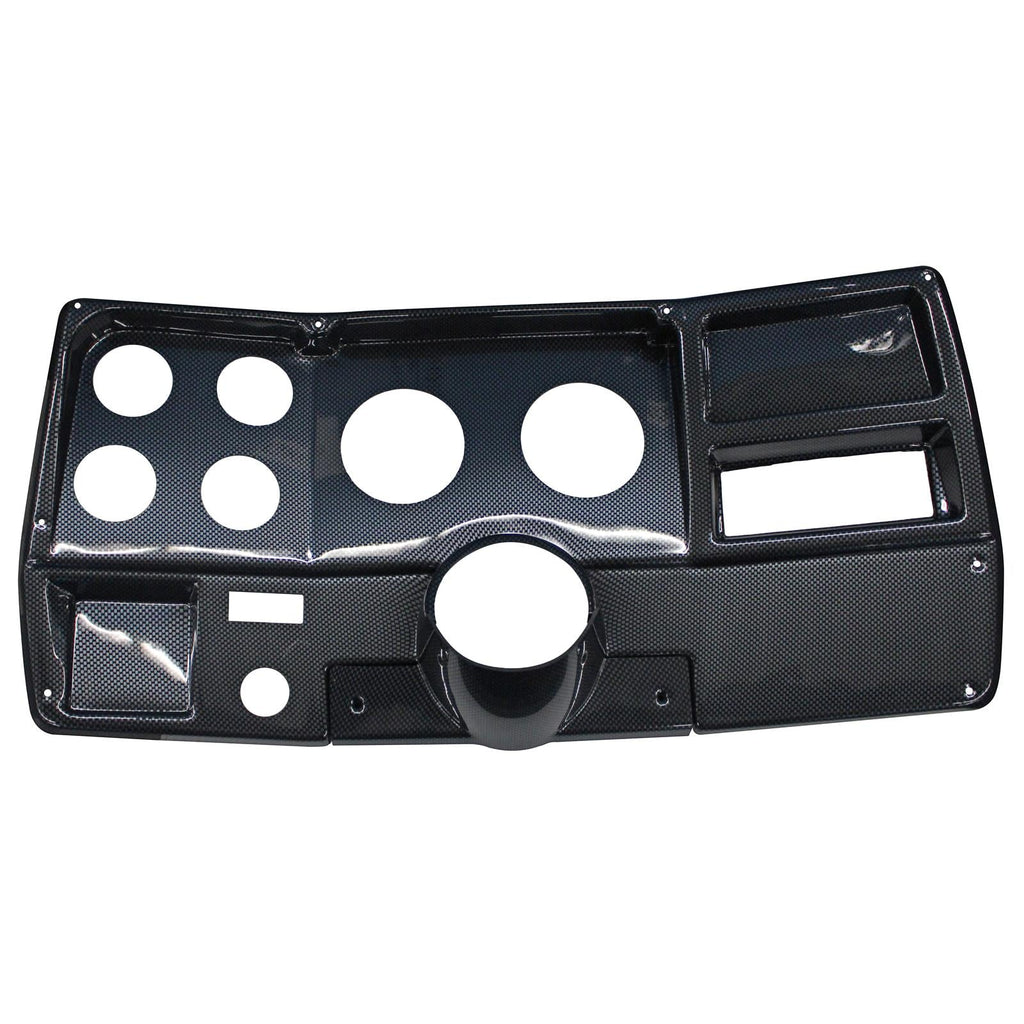 Notes: Molded ABS instrument panel will replace the original gauge housing. The drilled hole sizes are two gauge holes at 3 3/8 in. for the speedometer and tachometer and four gauge holes at 2 1/16 in. Panel does not have A/C vents.