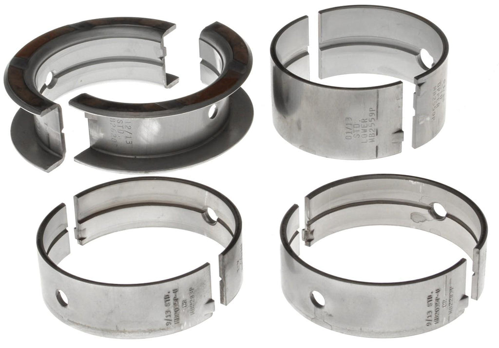Clevite P-Series main bearings are the oldest members of the Clevite 77 bearing family and are intended for high-revving engines. To compensate for the high-load factors and distortion in these engines, these bearings have higher eccentricity and a high crush factor. P-Series bearings are constructed of tri-metal cast copper lead. They have a steel back for support, a cast copper lead lining to withstand the loads of engine operation, and an electroplated babbit overlay on the running surface to provide searing surface qualities. In addition, the oil grooves on most applications extend all the way around both halves for better oiling.