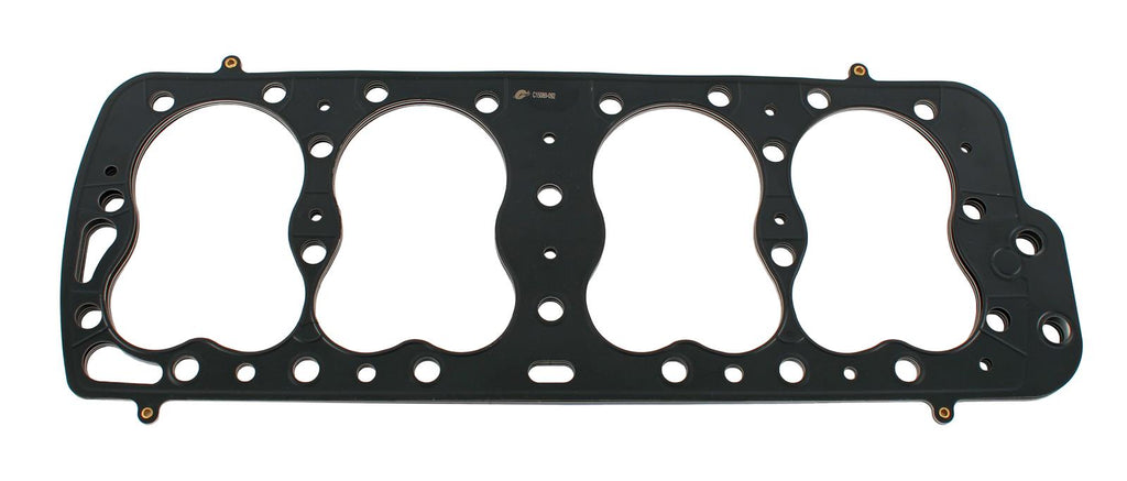 Cometic MLS head gaskets are constructed from multiple layers of stainless steel for strength and contain load-controlled embossments that conform load distribution across the sealing area. This creates an exceptional seal by requiring less clamp load—resulting in less bore distortion. The stainless steel outer layers utilize FKM (Viton ®) rubber coating, a high-temperature and chemical-resistant polymer. A topcoat of PTFE aids in resistance to fret and increased cold sealing. MLS head gaskets are available for most aftermarket cylinder heads; as with all of Cometic's MLS head gaskets, no sealants or re-torque is required.