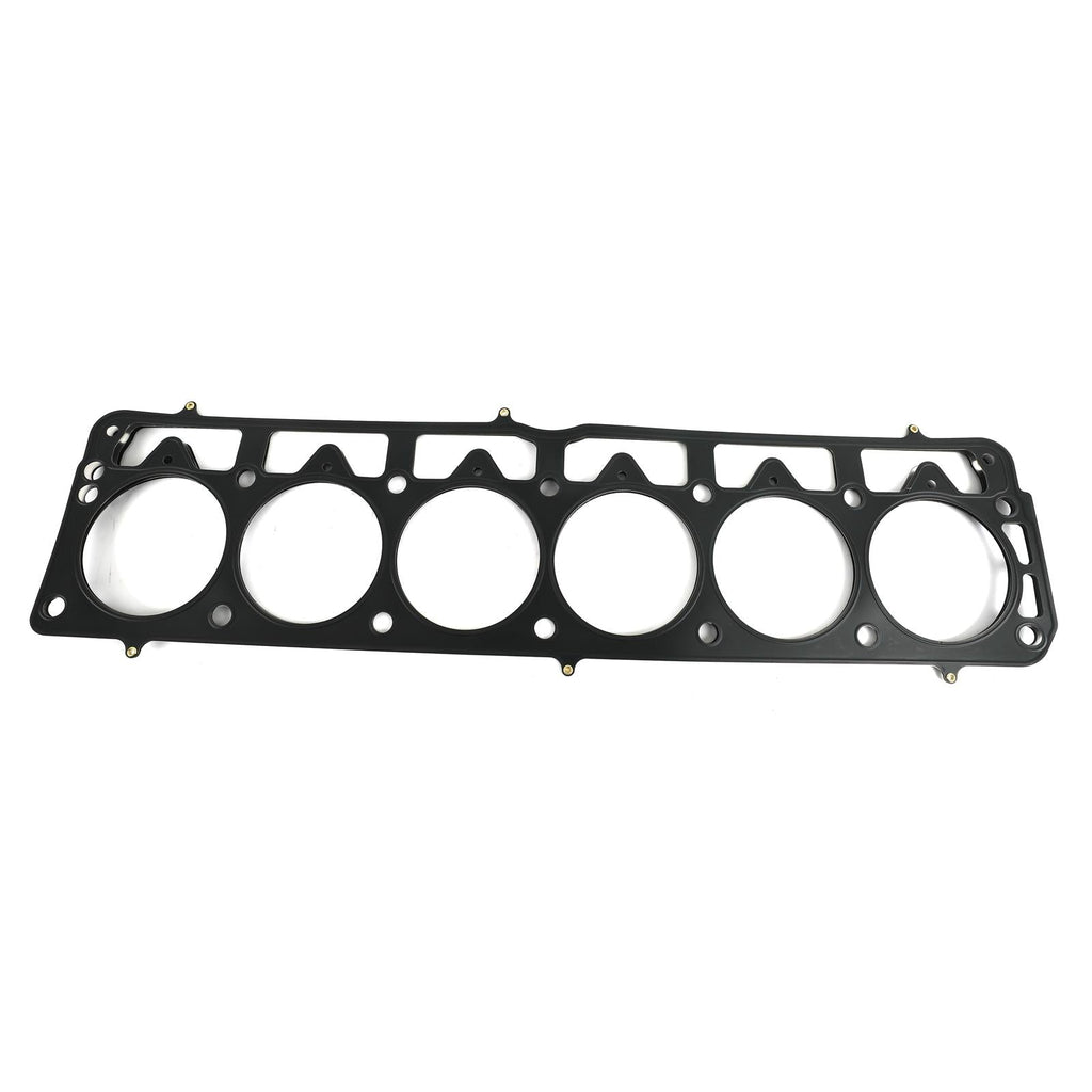 Cometic MLS head gaskets are constructed from multiple layers of stainless steel for strength and contain load-controlled embossments that conform load distribution across the sealing area. This creates an exceptional seal by requiring less clamp load—resulting in less bore distortion. The stainless steel outer layers utilize FKM (Viton ®) rubber coating, a high-temperature and chemical-resistant polymer. A topcoat of PTFE aids in resistance to fret and increased cold sealing. MLS head gaskets are available for most aftermarket cylinder heads; as with all of Cometic's MLS head gaskets, no sealants or re-torque is required.