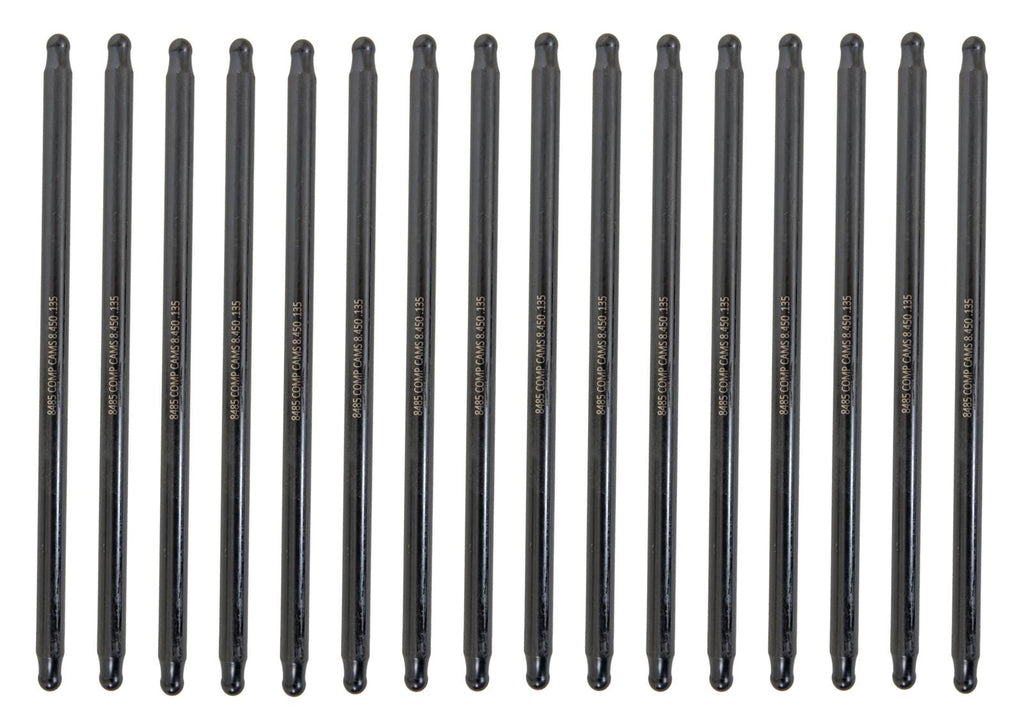 These COMP Cams Hi-Tech 210 degree pushrods were specifically designed for high-lift applications where pushrod and seat interference are problems at maximum lift. They're heat-treated to a minimum hardness of 60 on the Rockwell C scale, for the ultimate in strength. COMP Cams even gives them a black oxide finish and imprints the length and part number on them. In addition, they feature a 210 degree radius, rather than the standard 180 degree radius, so they'll work great with rocker arms that feature cup-type adjusters and applications requiring more load-bearing surface from the pushrod. If you are building a high-horsepower, high-rpm, high-lift camshaft engine, then you need to use these COMP Cams Hi-Tech 210 degree pushrods for maximum reliability.Brand: COMP Cams