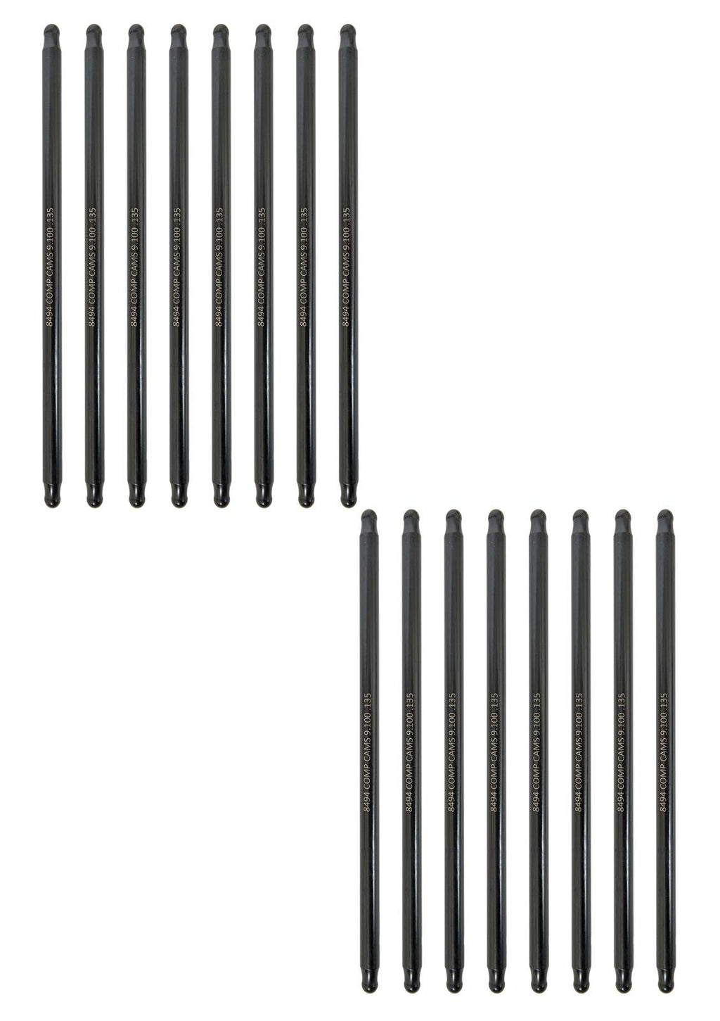 These COMP Cams Hi-Tech 210 degree pushrods were specifically designed for high-lift applications where pushrod and seat interference are problems at maximum lift. They're heat-treated to a minimum hardness of 60 on the Rockwell C scale, for the ultimate in strength. COMP Cams even gives them a black oxide finish and imprints the length and part number on them. In addition, they feature a 210 degree radius, rather than the standard 180 degree radius, so they'll work great with rocker arms that feature cup-type adjusters and applications requiring more load-bearing surface from the pushrod. If you are building a high-horsepower, high-rpm, high-lift camshaft engine, then you need to use these COMP Cams Hi-Tech 210 degree pushrods for maximum reliability.Brand: COMP Cams