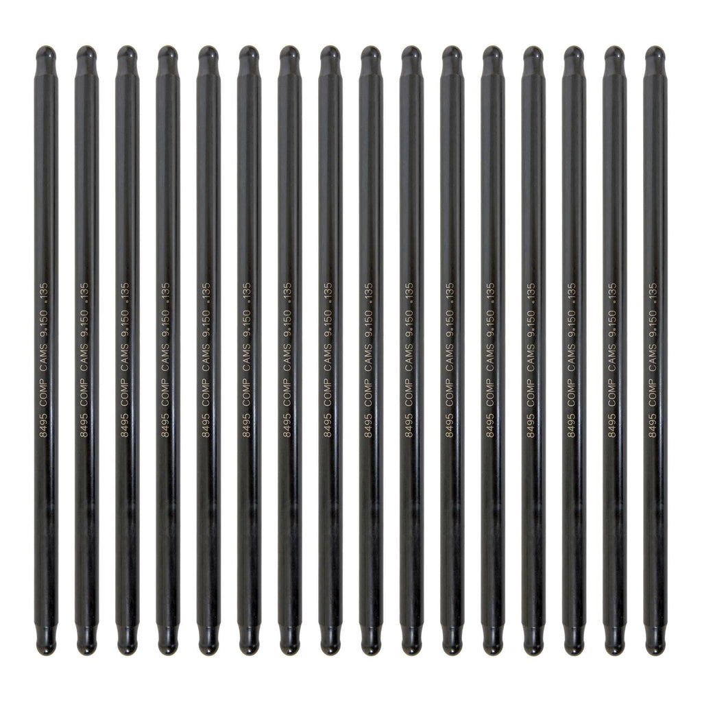 These COMP Cams Hi-Tech 210 degree pushrods were specifically designed for high-lift applications where pushrod and seat interference are problems at maximum lift. They're heat-treated to a minimum hardness of 60 on the Rockwell C scale, for the ultimate in strength. COMP Cams even gives them a black oxide finish and imprints the length and part number on them. In addition, they feature a 210 degree radius, rather than the standard 180 degree radius, so they'll work great with rocker arms that feature cup-type adjusters and applications requiring more load-bearing surface from the pushrod. If you are building a high-horsepower, high-rpm, high-lift camshaft engine, then you need to use these COMP Cams Hi-Tech 210 degree pushrods for maximum reliability.Brand: COMP Cams