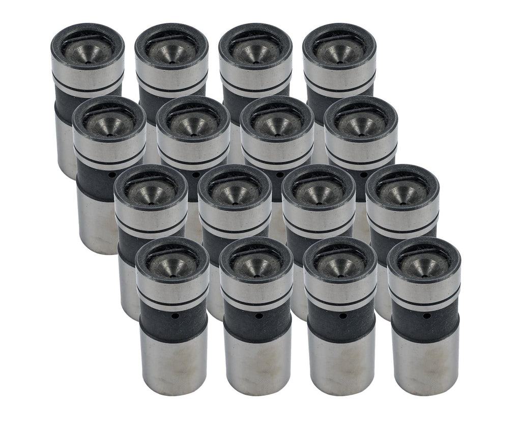 These High Energy hydraulic lifters from COMP Cams feature a patented, constant orifice-metering valve that precisely meters oil to the rocker arms. Continuous contact between the metering valve and the precisely coined bottom surface of the pushrod seat is maintained throughout the engine's rpm range, eliminating excessive oiling at high speeds. The pushrod seat is made of a special powdered metal iron alloy, heat-treated for strength and wear resistance. The longer piston is produced with through-hardened steel that provides more bearing surface and increased lifter longevity. These lifters have a lightweight check valve disk that allows for quicker response, resulting in increased engine speed before valve float.Brand: COMP Cams