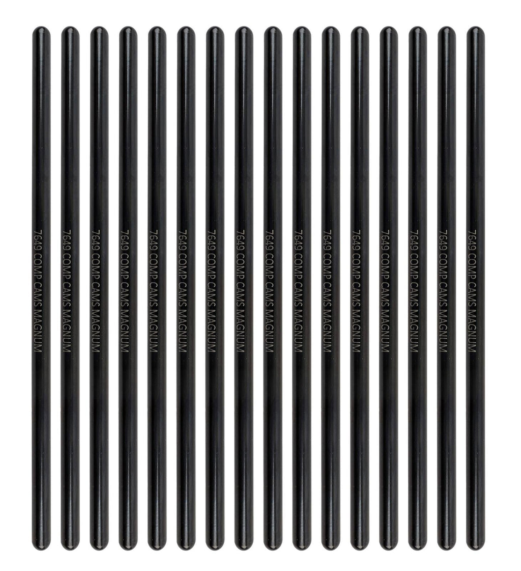 COMP Cams Magnum pushrods are the perfect complement to your Hot Street, bracket, oval track, or any other high performance engine. One-piece Magnum pushrods are made of C1020 high-carbon, .080 in. wall chromoly steel and are heat-treated for use with guideplates. They're an affordable way to combat higher spring pressures and the other stresses associated with high performance engines.Brand: COMP Cams
