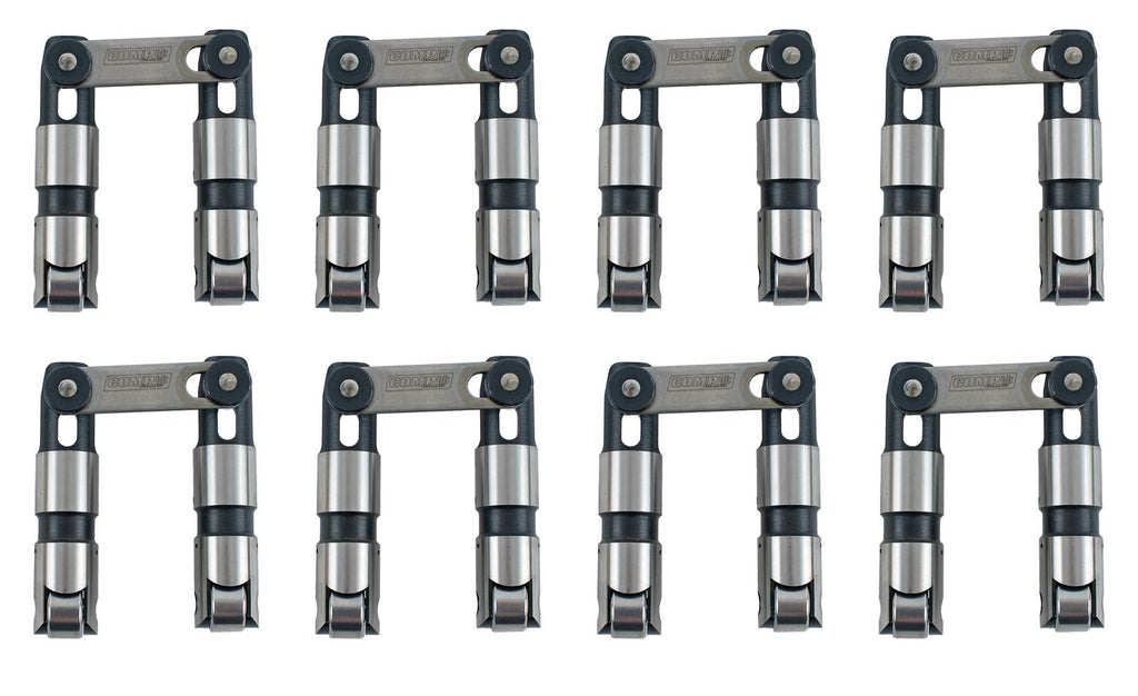 COMP Cams Sportsman solid roller lifters feature premium-quality, high-value components designed for sportsman and professional racing, along with high-end street machines. They're available in both needle-bearing and bushing configurations. Each design features two pressurized EDM oil feeds, as well as an edge-orifice feed to the wheel. This delivers a more reliable oil feed than most competing options. COMP Cams Sportsman solid roller lifters are also designed with a shallower oil band than competitors' versions for increased strength and rigidity, while internal machining helps to reduce weight. The body utilizes a skirted wheel that strengthens the lifter ears, and the skirt also provides more contact area with the lifter bore for further lifter stabilization. In addition, staked axles eliminate clips and provide robust axle retention. This feature increases the stiffness of the lifter ears and helps to prevent the ears from spreading. The COMP Cams Sportsman solid roller lifters are built from 8620 premium steel for increased strength and wear resistance and they feature a captured, stainless steel link bar design. The lifters also utilize a tapered and slotted link bar tower for reduced weight and improved aesthetics. Choose the size and options tailored for your engine application.