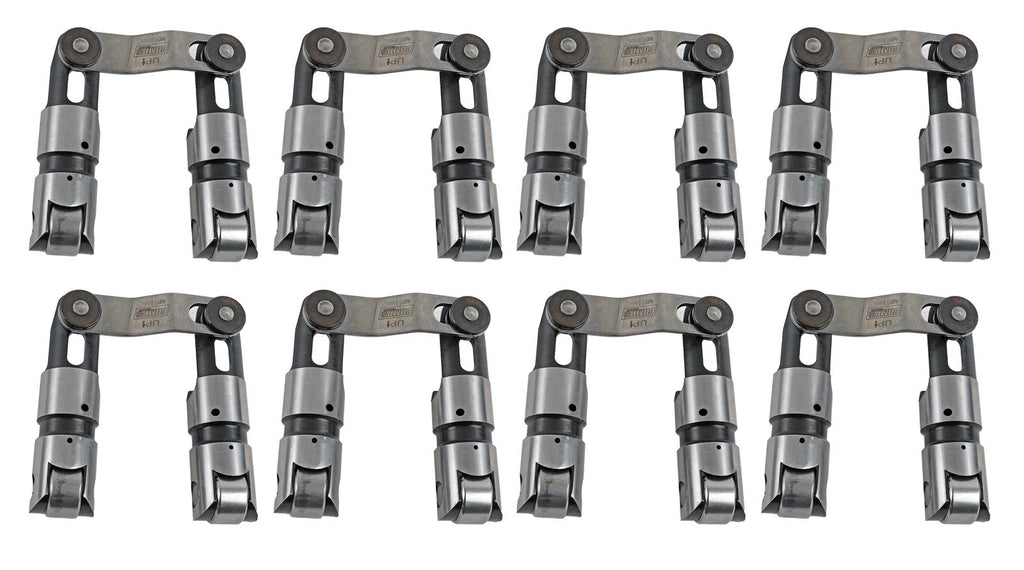 COMP Cams Sportsman solid roller lifters feature premium-quality, high-value components designed for sportsman and professional racing, along with high-end street machines. They're available in both needle-bearing and bushing configurations. Each design features two pressurized EDM oil feeds, as well as an edge-orifice feed to the wheel. This delivers a more reliable oil feed than most competing options. COMP Cams Sportsman solid roller lifters are also designed with a shallower oil band than competitors' versions for increased strength and rigidity, while internal machining helps to reduce weight. The body utilizes a skirted wheel that strengthens the lifter ears, and the skirt also provides more contact area with the lifter bore for further lifter stabilization. In addition, staked axles eliminate clips and provide robust axle retention. This feature increases the stiffness of the lifter ears and helps to prevent the ears from spreading. The COMP Cams Sportsman solid roller lifters are built from 8620 premium steel for increased strength and wear resistance and they feature a captured, stainless steel link bar design. The lifters also utilize a tapered and slotted link bar tower for reduced weight and improved aesthetics. Choose the size and options tailored for your engine application.