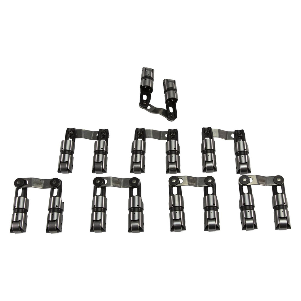 COMP Cams Sportsman solid roller lifters feature premium-quality, high-value components designed for sportsman and professional racing, along with high-end street machines. They're available in both needle-bearing and bushing configurations. Each design features two pressurized EDM oil feeds, as well as an edge-orifice feed to the wheel. This delivers a more reliable oil feed than most competing options. COMP Cams Sportsman solid roller lifters are also designed with a shallower oil band than competitors' versions for increased strength and rigidity, while internal machining helps to reduce weight. The body utilizes a skirted wheel that strengthens the lifter ears, and the skirt also provides more contact area with the lifter bore for further lifter stabilization. In addition, staked axles eliminate clips and provide robust axle retention. This feature increases the stiffness of the lifter ears and helps to prevent the ears from spreading. The COMP Cams Sportsman solid roller lifters are built from 8620 premium steel for increased strength and wear resistance and they feature a captured, stainless steel link bar design. The lifters also utilize a tapered and slotted link bar tower for reduced weight and improved aesthetics. Choose the size and options tailored for your engine application.