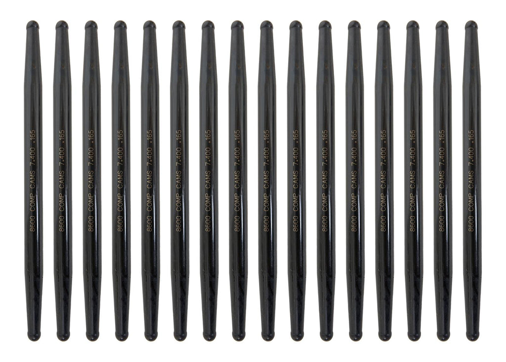COMP Cams straight tube pushrods feature an extra-thick .125 in. wall and an ultra-rigid large 7/16 in. diameter design that prevents the damaging valvetrain vibrations that occur when smaller diameter pushrods snap back into position. These straight tube pushrods are offered in a variety of lengths and are precision-made with high-strength materials for consistency and accurate geometry. Selecting the correct pushrods is critical for proper valvetrain operation. You can count on COMP Cams for the quality components you need to keep your engine running right!Brand: COMP Cams