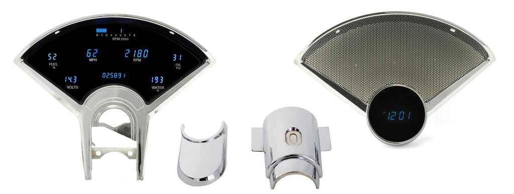 Notes: Kit includes reproduction chrome bezel, upper and lower steering column bezels, and speaker bezel with clock opening.