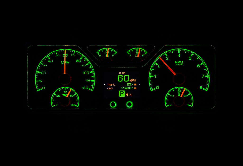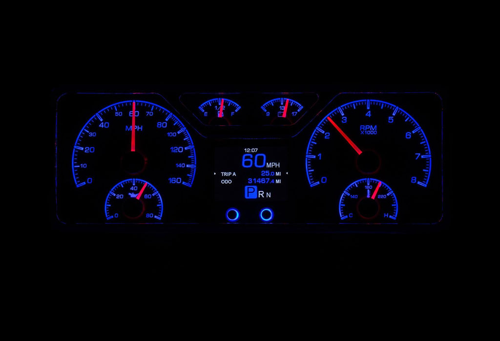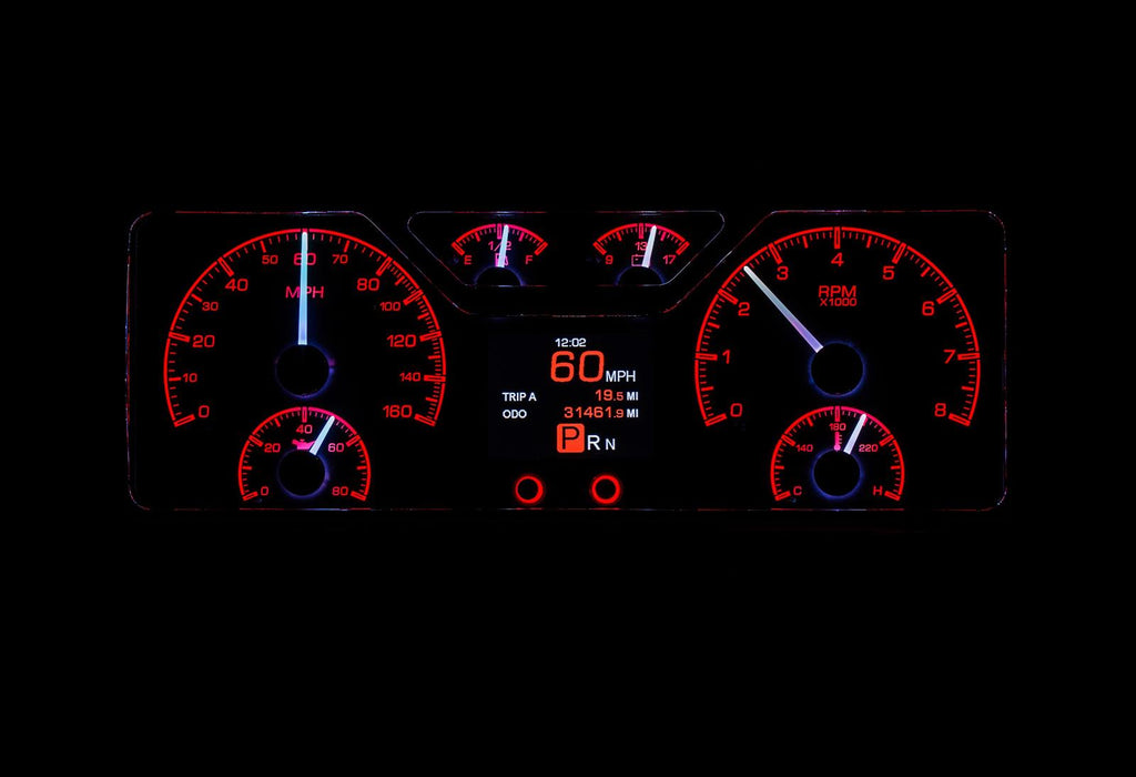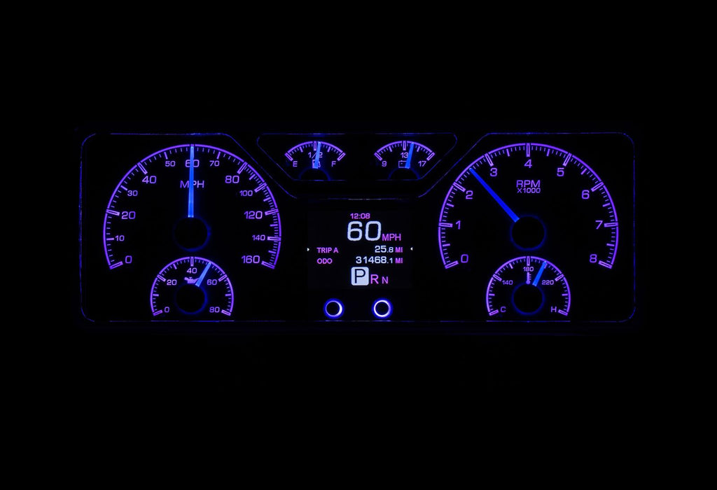 Dakota Digital HDX direct-fit analog gauge systems feature the latest in aftermarket automotive instrumentation technology. They take personalization and usability to a whole new dimension, while retaining your favorite features from the wildly popular VHX-Series, such as LED backlighting for the numbers, tick marks, and dead-faced dash indicators (turn signals, high beam, check engine, cruise control engaged, and parking brake). Illuminated needles and a lifetime warranty are still part of the deal as well. These features add up to clean, easy-to-read instrument systems in all conditions.