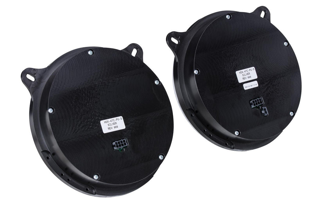 Precision stepper motors provide accurate needle movement, along with a full sweep at key-on, and the needle hubs are black nickel plated spun-aluminum. Dakota Digital HDX direct-fit analog gauge systems are available with your choice of black or silver alloy gauge-face styling. The systems allow the user to select their favorite illumination color for the gauge readings and needles, as well as the TFT message center displays. RGB LEDs are incorporated into the circuit boards for fully adjustable display colors, allowing the user to personalize their instrument system to match nearly any vehicle theme.