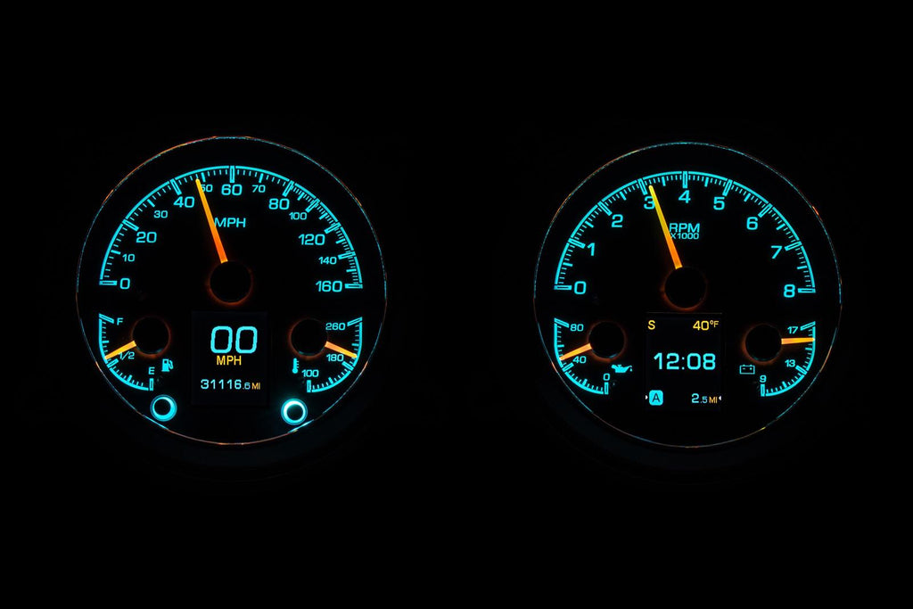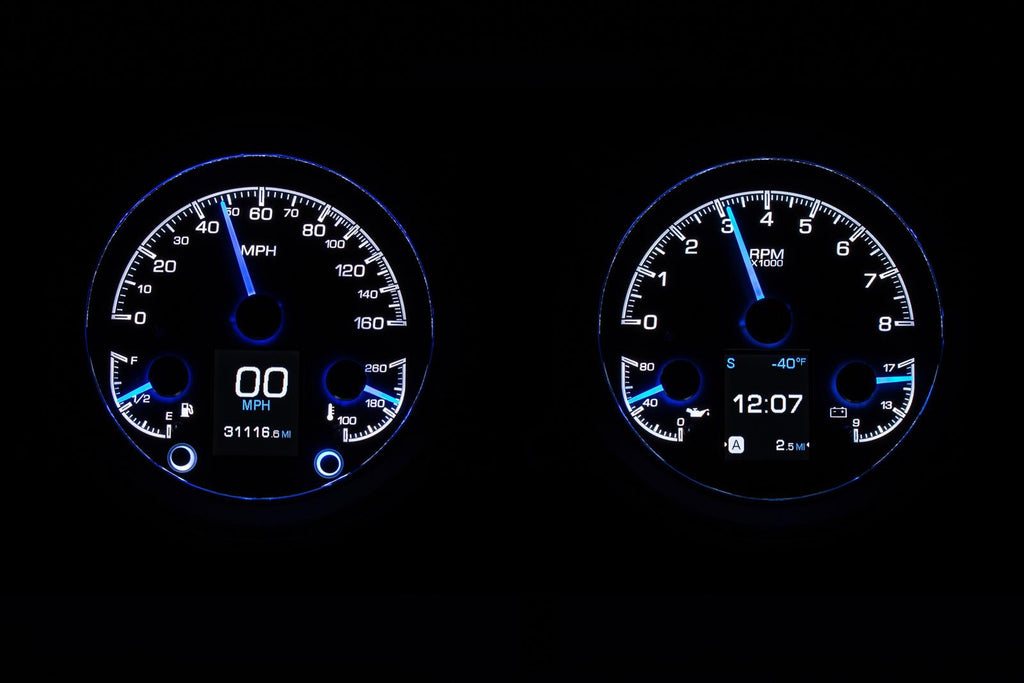 Dakota Digital HDX direct-fit analog gauge systems feature the latest in aftermarket automotive instrumentation technology. They take personalization and usability to a whole new dimension, while retaining your favorite features from the wildly popular VHX-Series, such as LED backlighting for the numbers, tick marks, and dead-faced dash indicators (turn signals, high beam, check engine, cruise control engaged, and parking brake). Illuminated needles and a lifetime warranty are still part of the deal as well. These features add up to clean, easy-to-read instrument systems in all conditions.