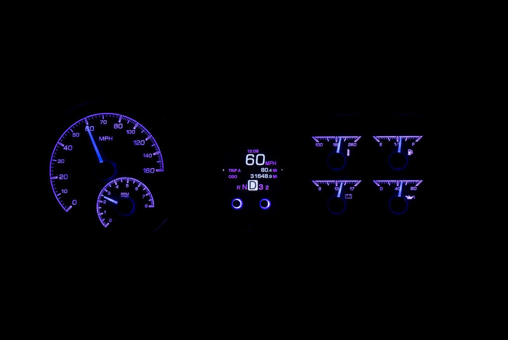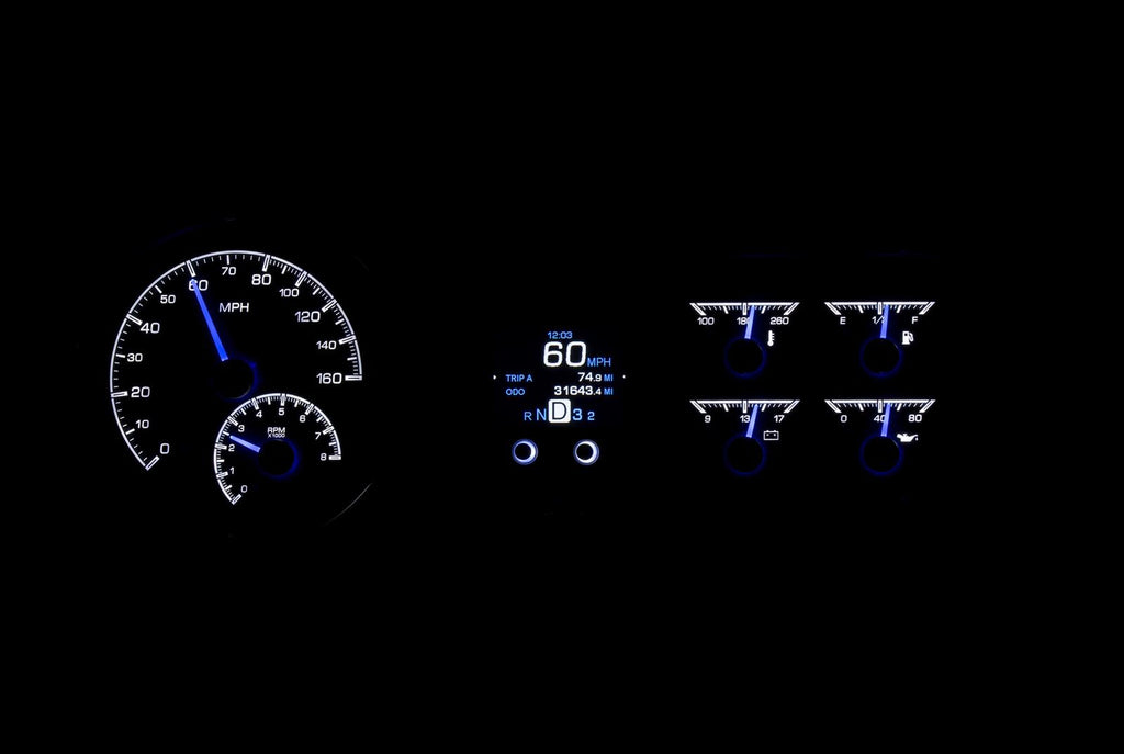 Dakota Digital HDX direct-fit analog gauge systems feature the latest in aftermarket automotive instrumentation technology. They take personalization and usability to a whole new dimension, while retaining your favorite features from the wildly popular VHX-Series, such as LED backlighting for the numbers, tick marks, and dead-faced dash indicators (turn signals, high beam, check engine, cruise control engaged, and parking brake). Illuminated needles and a lifetime warranty are still part of the deal as well. These features add up to clean, easy-to-read instrument systems in all conditions.