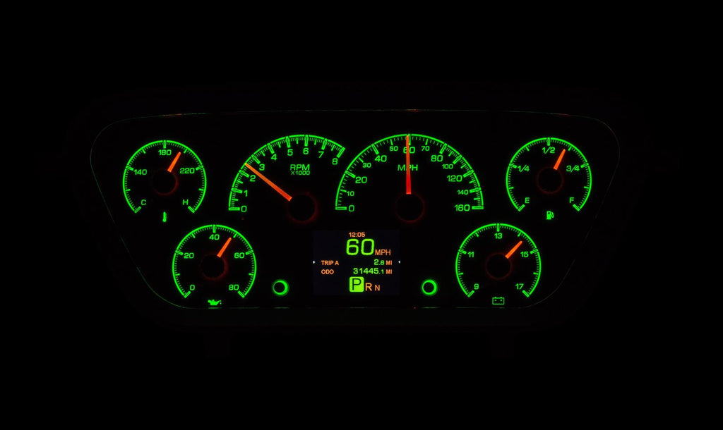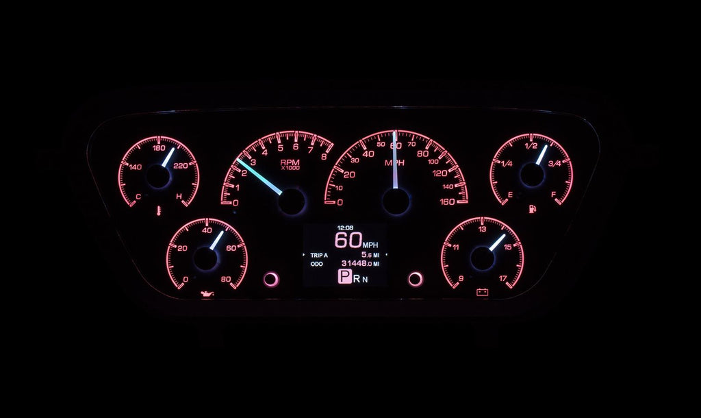 Dakota Digital HDX direct-fit analog gauge systems feature the latest in aftermarket automotive instrumentation technology. They take personalization and usability to a whole new dimension, while retaining your favorite features from the wildly popular VHX-Series, such as LED backlighting for the numbers, tick marks, and dead-faced dash indicators (turn signals, high beam, check engine, cruise control engaged, and parking brake). Illuminated needles and a lifetime warranty are still part of the deal as well. These features add up to clean, easy-to-read instrument systems in all conditions.