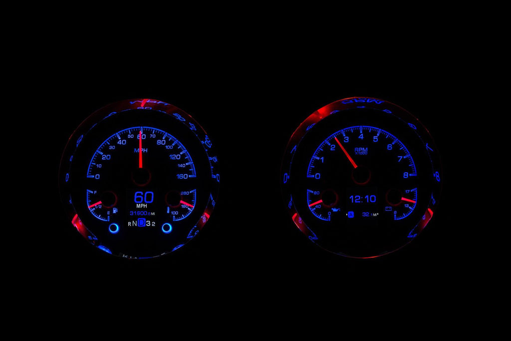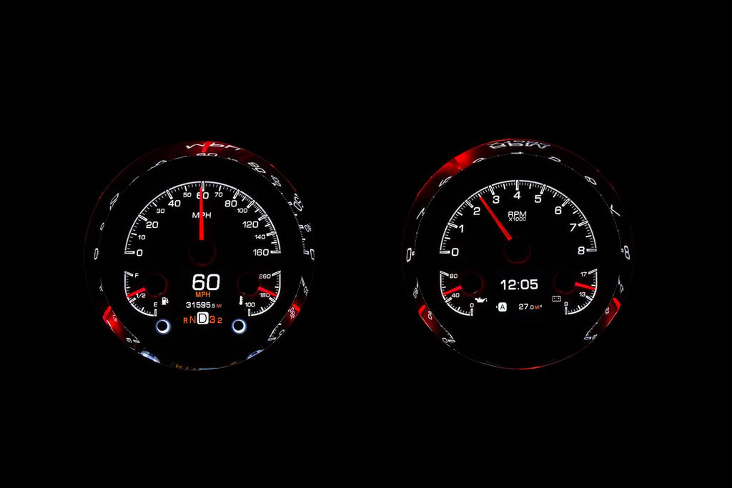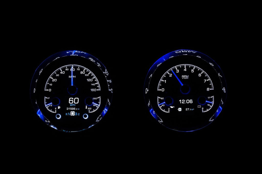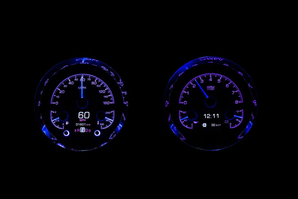 Dakota Digital HDX direct-fit analog gauge systems feature the latest in aftermarket automotive instrumentation technology. They take personalization and usability to a whole new dimension, while retaining your favorite features from the wildly popular VHX-Series, such as LED backlighting for the numbers, tick marks, and dead-faced dash indicators (turn signals, high beam, check engine, cruise control engaged, and parking brake). Illuminated needles and a lifetime warranty are still part of the deal as well. These features add up to clean, easy-to-read instrument systems in all conditions.