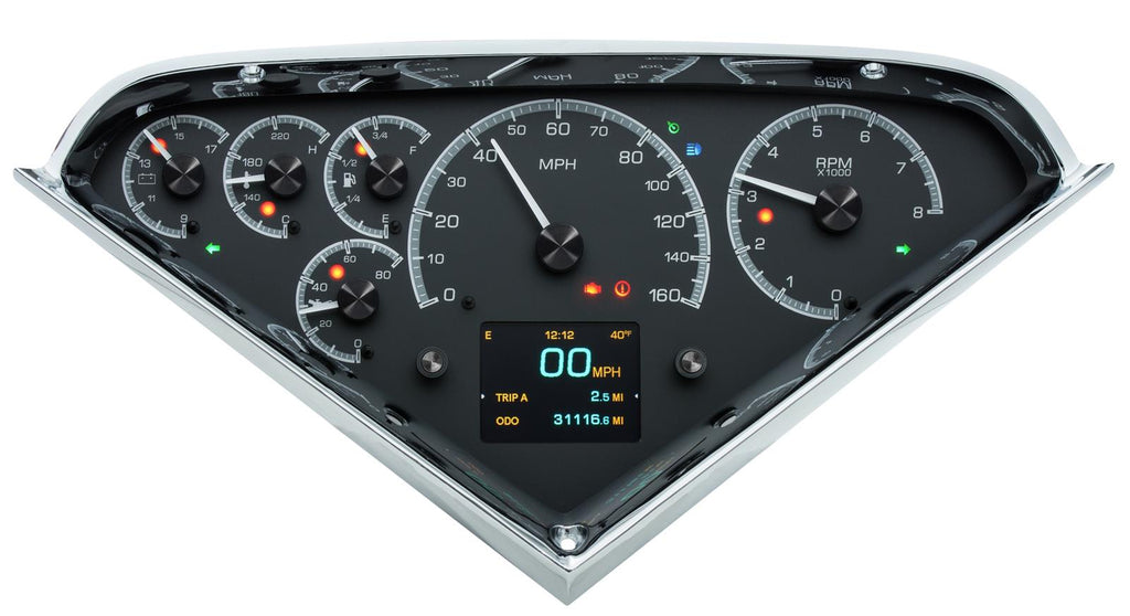 Dakota Digital HDX direct-fit analog gauge systems feature the latest in aftermarket automotive instrumentation technology. They take personalization and usability to a whole new dimension, while retaining your favorite features from the wildly popular VHX-Series, such as LED backlighting for the numbers, tick marks, and dead-faced dash indicators (turn signals, high beam, check engine, cruise control engaged, and parking brake). Illuminated needles and a lifetime warranty are still part of the deal as well. These features add up to clean, easy-to-read instrument systems in all conditions.