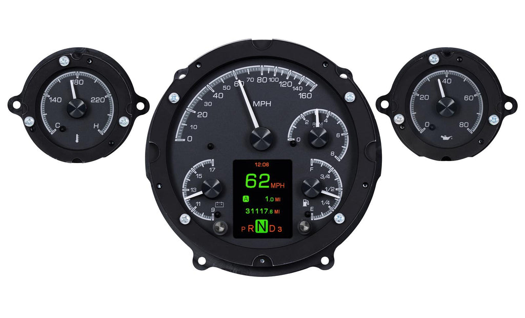 Dakota Digital HDX direct-fit analog gauge systems feature the latest in aftermarket automotive instrumentation technology. They take personalization and usability to a whole new dimension, while retaining your favorite features from the wildly popular VHX-Series, such as LED backlighting for the numbers, tick marks, and dead-faced dash indicators (turn signals, high beam, check engine, cruise control engaged, and parking brake). Illuminated needles and a lifetime warranty are still part of the deal as well. These features add up to clean, easy-to-read instrument systems in all conditions.