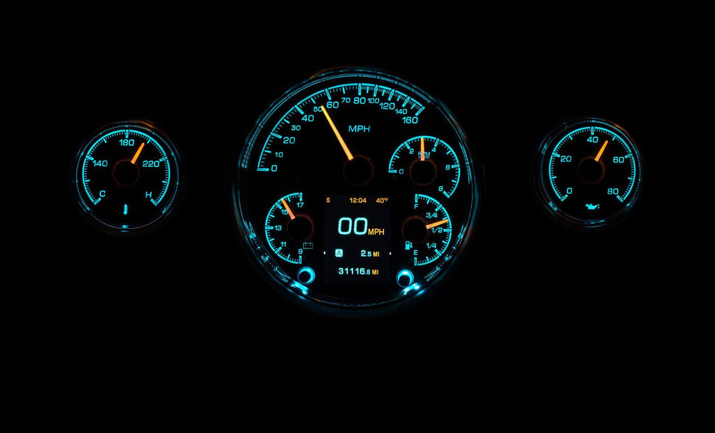 Dakota Digital HDX direct-fit analog gauge systems feature the latest in aftermarket automotive instrumentation technology. They take personalization and usability to a whole new dimension, while retaining your favorite features from the wildly popular VHX-Series, such as LED backlighting for the numbers, tick marks, and dead-faced dash indicators (turn signals, high beam, check engine, cruise control engaged, and parking brake). Illuminated needles and a lifetime warranty are still part of the deal as well. These features add up to clean, easy-to-read instrument systems in all conditions.