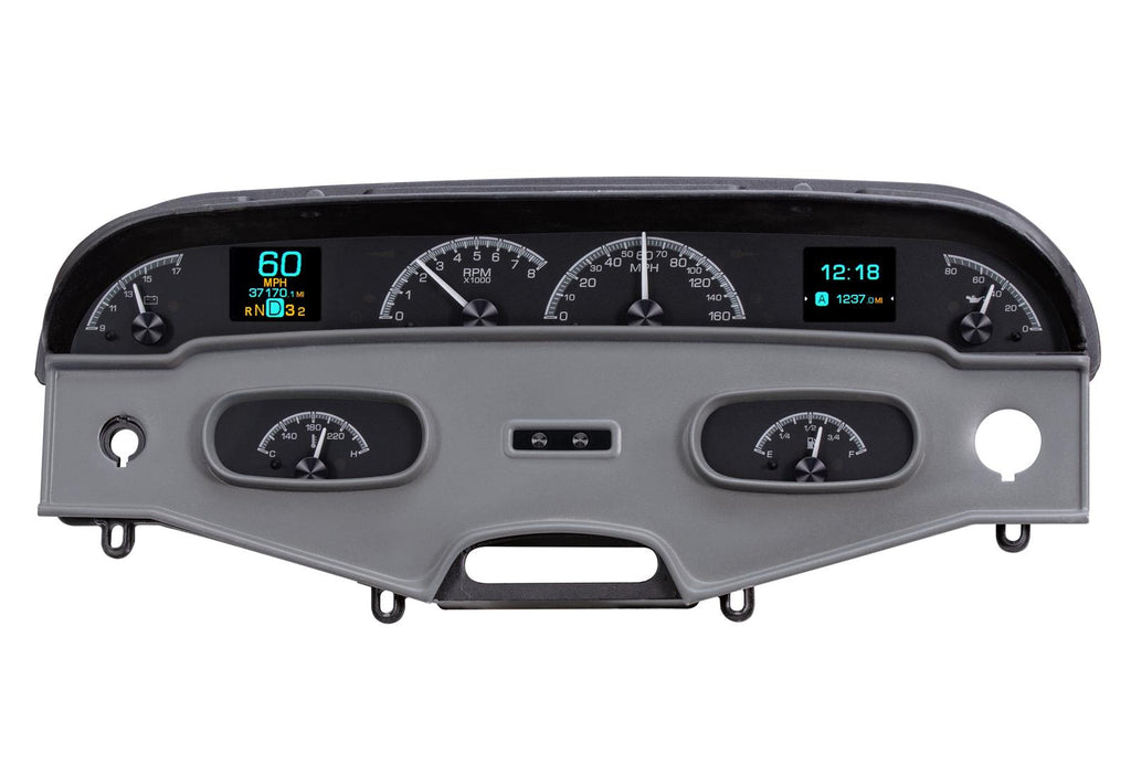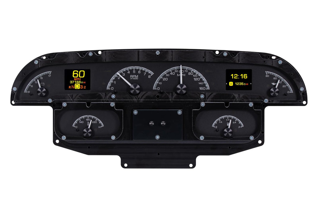 Dakota Digital HDX direct-fit analog gauge systems feature the latest in aftermarket automotive instrumentation technology. They take personalization and usability to a whole new dimension, while retaining your favorite features from the wildly popular VHX-Series, such as LED backlighting for the numbers, tick marks, and dead-faced dash indicators (turn signals, high beam, check engine, cruise control engaged, and parking brake). Illuminated needles and a lifetime warranty are still part of the deal as well. These features add up to clean, easy-to-read instrument systems in all conditions.