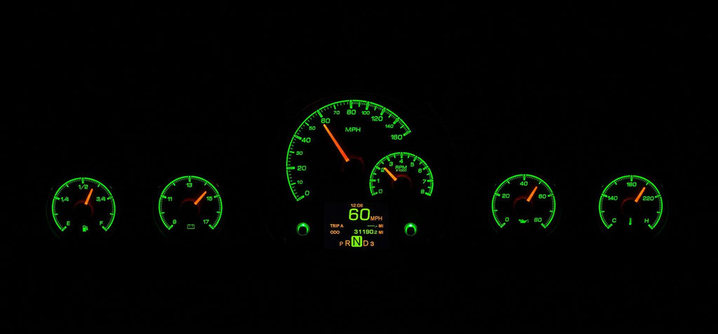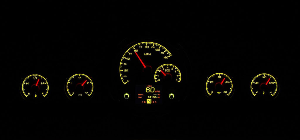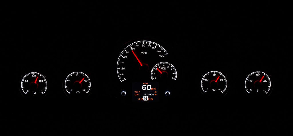 Dakota Digital HDX direct-fit analog gauge systems feature the latest in aftermarket automotive instrumentation technology. They take personalization and usability to a whole new dimension, while retaining your favorite features from the wildly popular VHX-Series, such as LED backlighting for the numbers, tick marks, and dead-faced dash indicators (turn signals, high beam, check engine, cruise control engaged, and parking brake). Illuminated needles and a lifetime warranty are still part of the deal as well. These features add up to clean, easy-to-read instrument systems in all conditions.