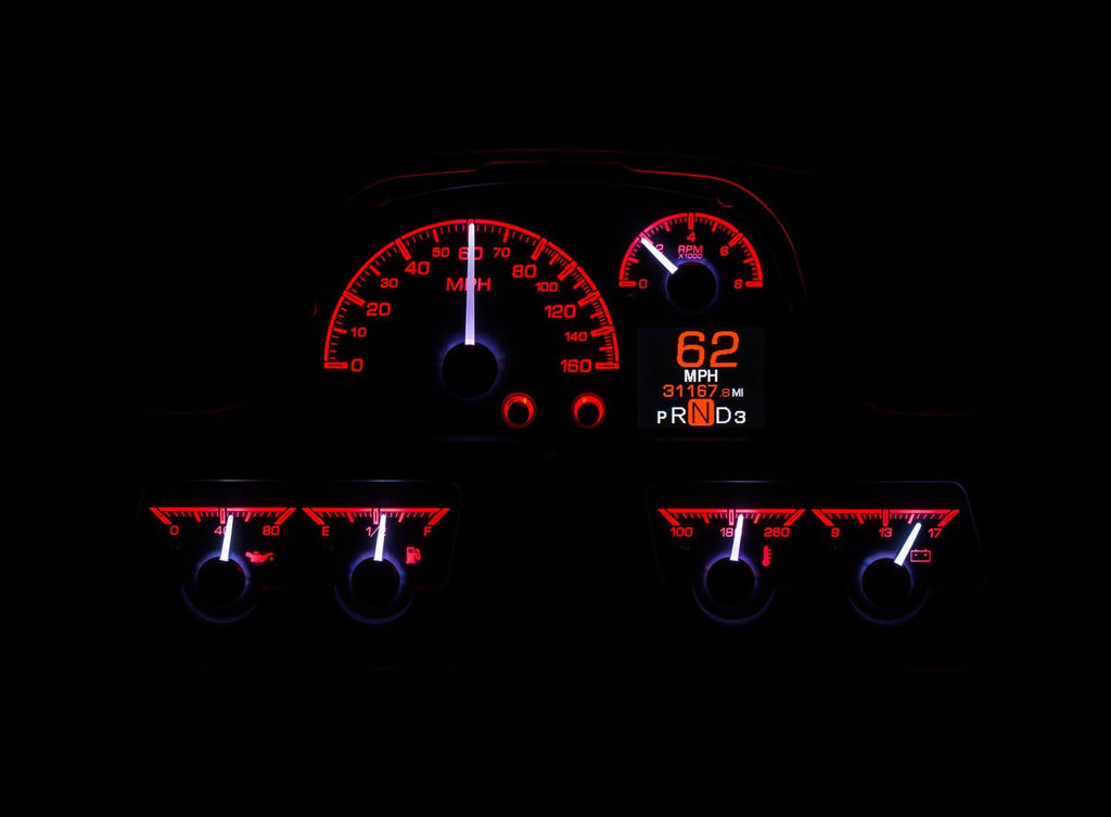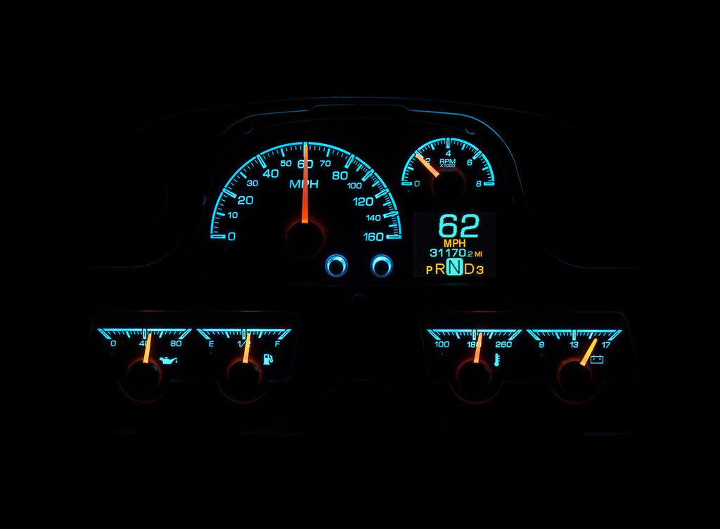 Dakota Digital HDX direct-fit analog gauge systems feature the latest in aftermarket automotive instrumentation technology. They take personalization and usability to a whole new dimension, while retaining your favorite features from the wildly popular VHX-Series, such as LED backlighting for the numbers, tick marks, and dead-faced dash indicators (turn signals, high beam, check engine, cruise control engaged, and parking brake). Illuminated needles and a lifetime warranty are still part of the deal as well. These features add up to clean, easy-to-read instrument systems in all conditions.
