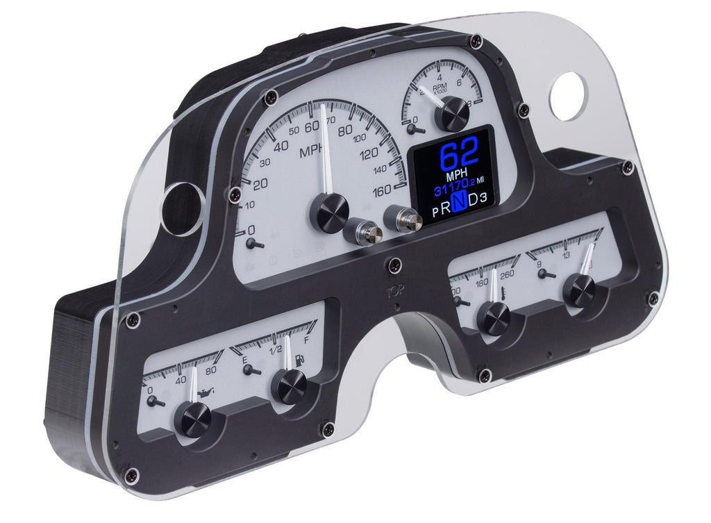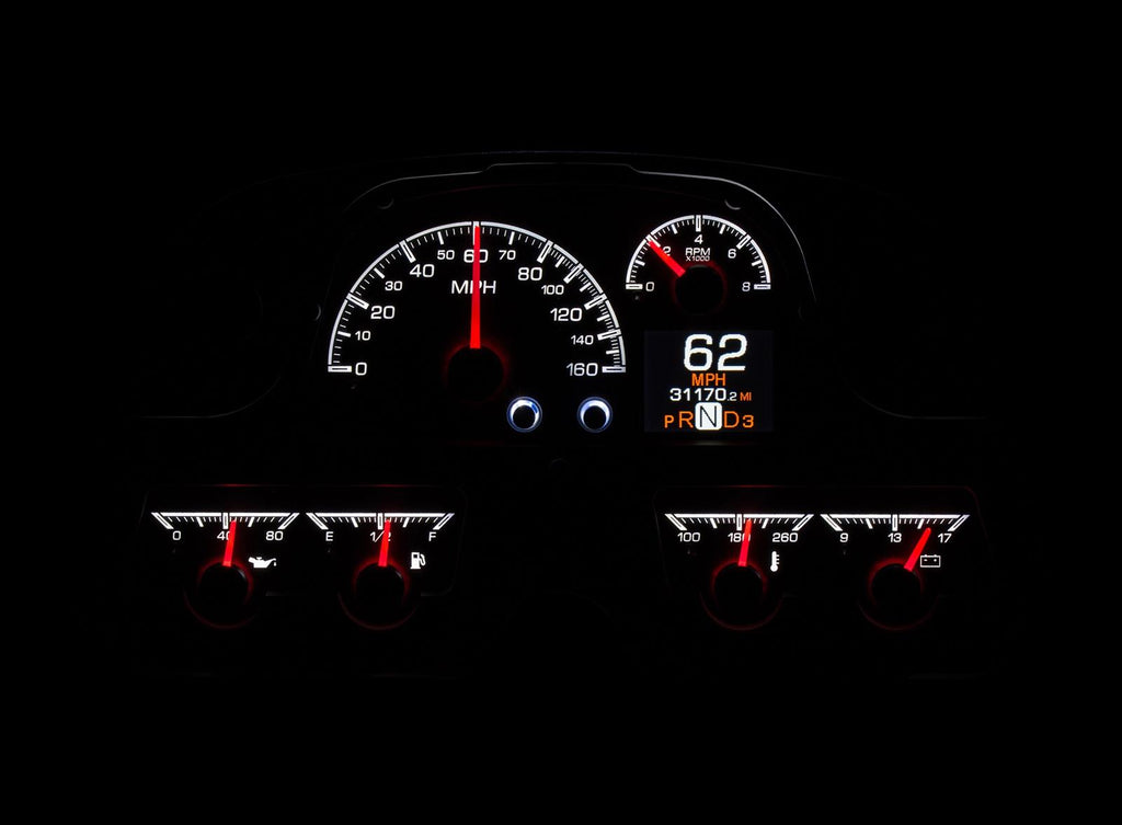 Dakota Digital HDX direct-fit analog gauge systems feature the latest in aftermarket automotive instrumentation technology. They take personalization and usability to a whole new dimension, while retaining your favorite features from the wildly popular VHX-Series, such as LED backlighting for the numbers, tick marks, and dead-faced dash indicators (turn signals, high beam, check engine, cruise control engaged, and parking brake). Illuminated needles and a lifetime warranty are still part of the deal as well. These features add up to clean, easy-to-read instrument systems in all conditions.