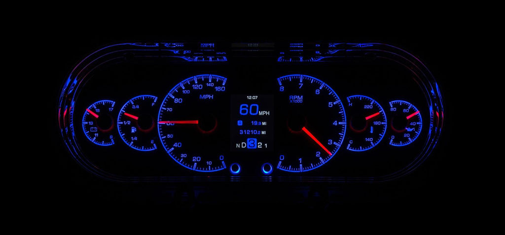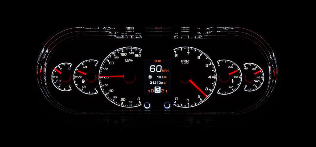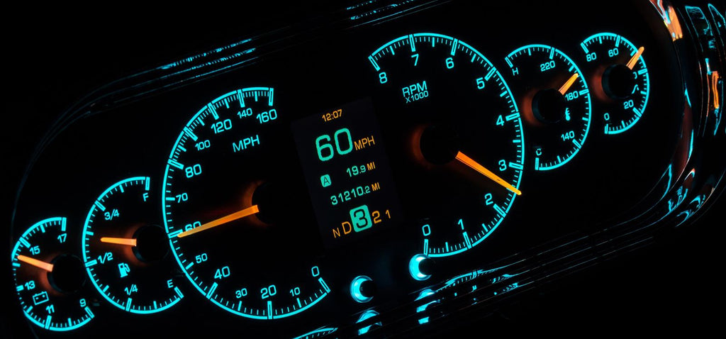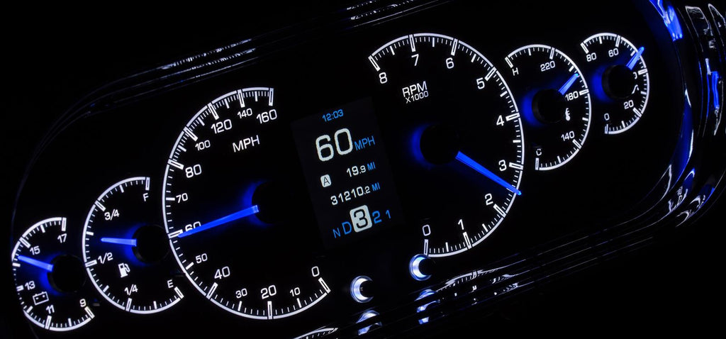 Dakota Digital HDX direct-fit analog gauge systems feature the latest in aftermarket automotive instrumentation technology. They take personalization and usability to a whole new dimension, while retaining your favorite features from the wildly popular VHX-Series, such as LED backlighting for the numbers, tick marks, and dead-faced dash indicators (turn signals, high beam, check engine, cruise control engaged, and parking brake). Illuminated needles and a lifetime warranty are still part of the deal as well. These features add up to clean, easy-to-read instrument systems in all conditions.