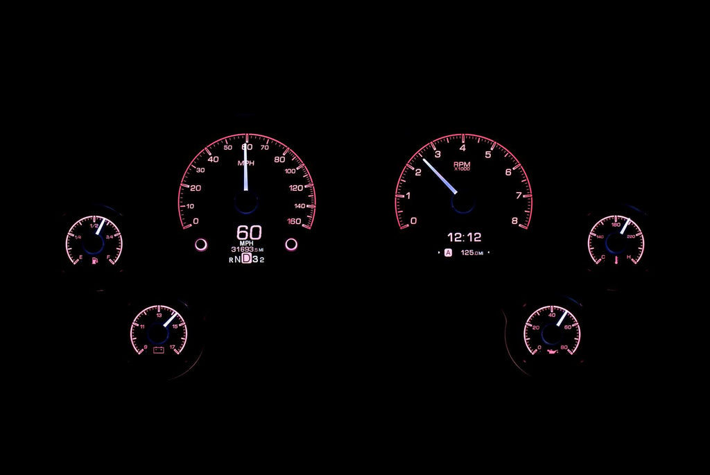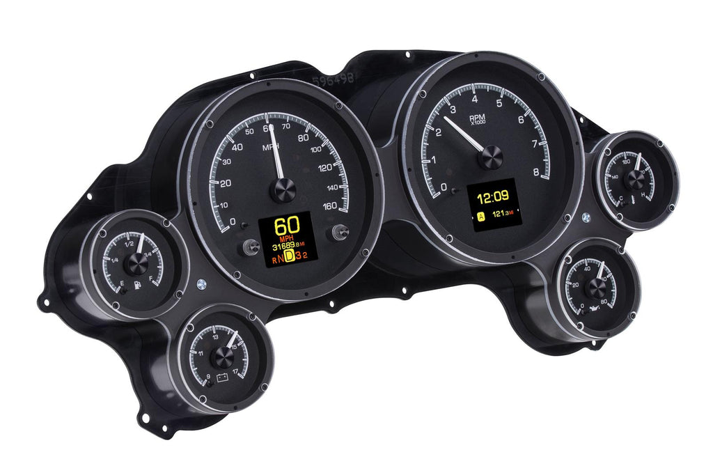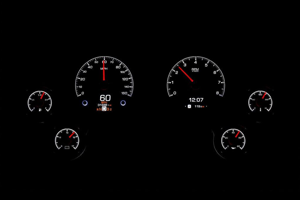 Dakota Digital HDX direct-fit analog gauge systems feature the latest in aftermarket automotive instrumentation technology. They take personalization and usability to a whole new dimension, while retaining your favorite features from the wildly popular VHX-Series, such as LED backlighting for the numbers, tick marks, and dead-faced dash indicators (turn signals, high beam, check engine, cruise control engaged, and parking brake). Illuminated needles and a lifetime warranty are still part of the deal as well. These features add up to clean, easy-to-read instrument systems in all conditions.