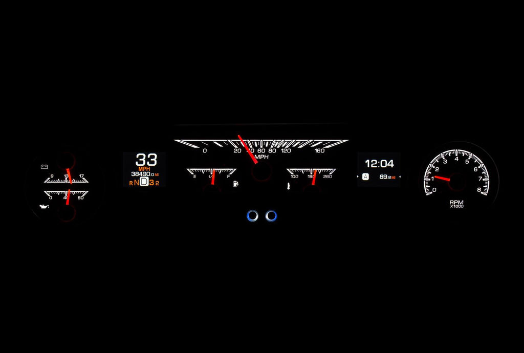 Dakota Digital HDX direct-fit analog gauge systems feature the latest in aftermarket automotive instrumentation technology. They take personalization and usability to a whole new dimension, while retaining your favorite features from the wildly popular VHX-Series, such as LED backlighting for the numbers, tick marks, and dead-faced dash indicators (turn signals, high beam, check engine, cruise control engaged, and parking brake). Illuminated needles and a lifetime warranty are still part of the deal as well. These features add up to clean, easy-to-read instrument systems in all conditions.