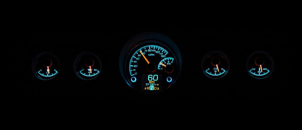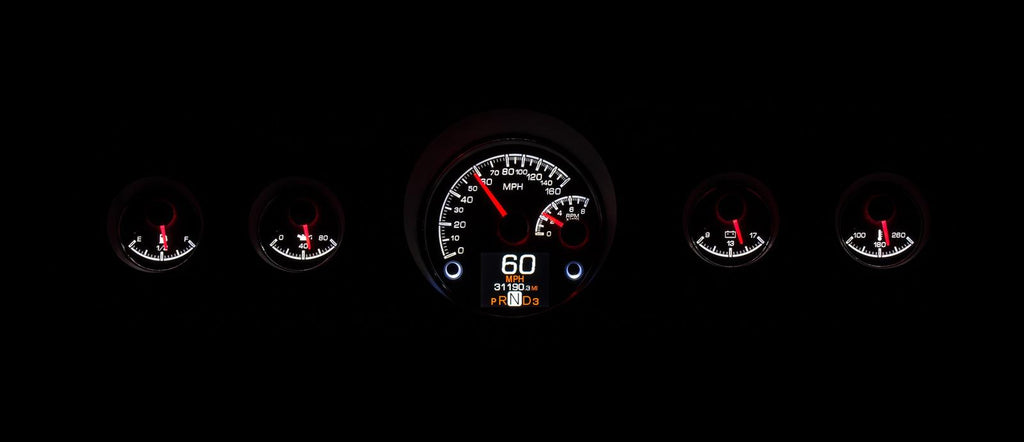 Dakota Digital HDX direct-fit analog gauge systems feature the latest in aftermarket automotive instrumentation technology. They take personalization and usability to a whole new dimension, while retaining your favorite features from the wildly popular VHX-Series, such as LED backlighting for the numbers, tick marks, and dead-faced dash indicators (turn signals, high beam, check engine, cruise control engaged, and parking brake). Illuminated needles and a lifetime warranty are still part of the deal as well. These features add up to clean, easy-to-read instrument systems in all conditions.