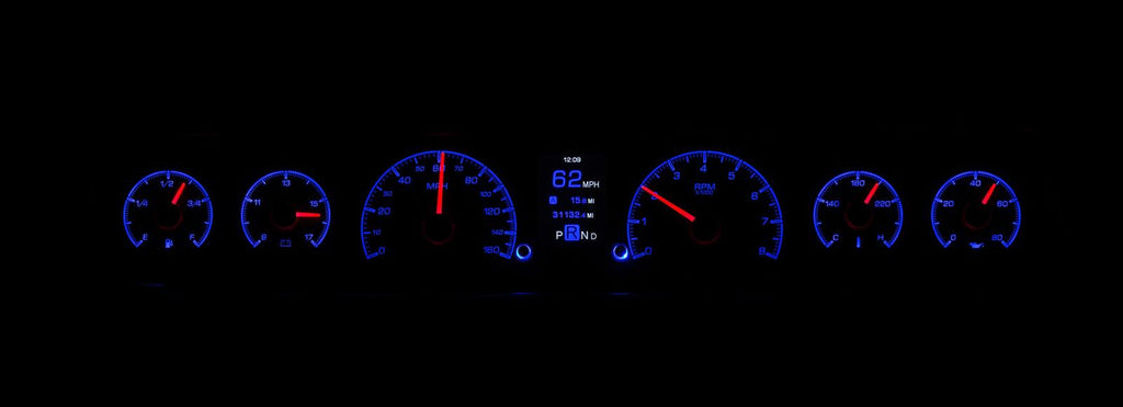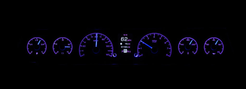 Dakota Digital HDX direct-fit analog gauge systems feature the latest in aftermarket automotive instrumentation technology. They take personalization and usability to a whole new dimension, while retaining your favorite features from the wildly popular VHX-Series, such as LED backlighting for the numbers, tick marks, and dead-faced dash indicators (turn signals, high beam, check engine, cruise control engaged, and parking brake). Illuminated needles and a lifetime warranty are still part of the deal as well. These features add up to clean, easy-to-read instrument systems in all conditions.