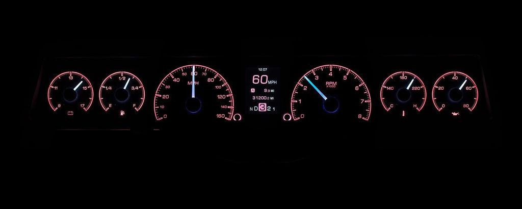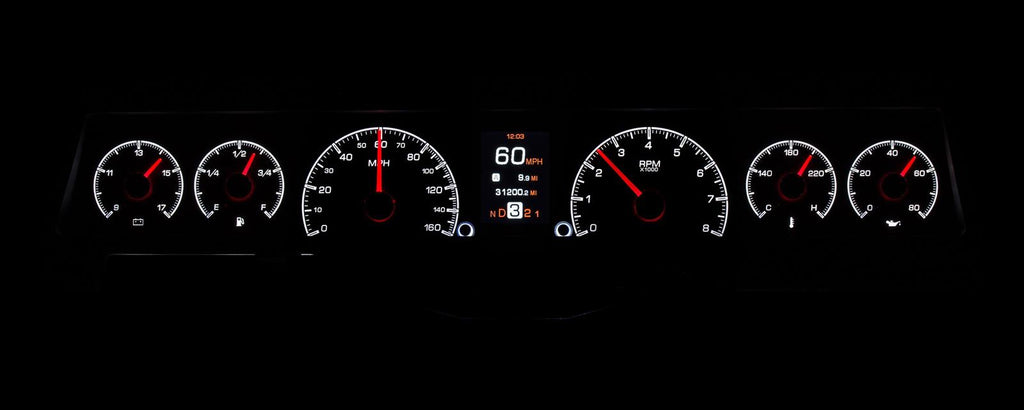 Dakota Digital HDX direct-fit analog gauge systems feature the latest in aftermarket automotive instrumentation technology. They take personalization and usability to a whole new dimension, while retaining your favorite features from the wildly popular VHX-Series, such as LED backlighting for the numbers, tick marks, and dead-faced dash indicators (turn signals, high beam, check engine, cruise control engaged, and parking brake). Illuminated needles and a lifetime warranty are still part of the deal as well. These features add up to clean, easy-to-read instrument systems in all conditions.