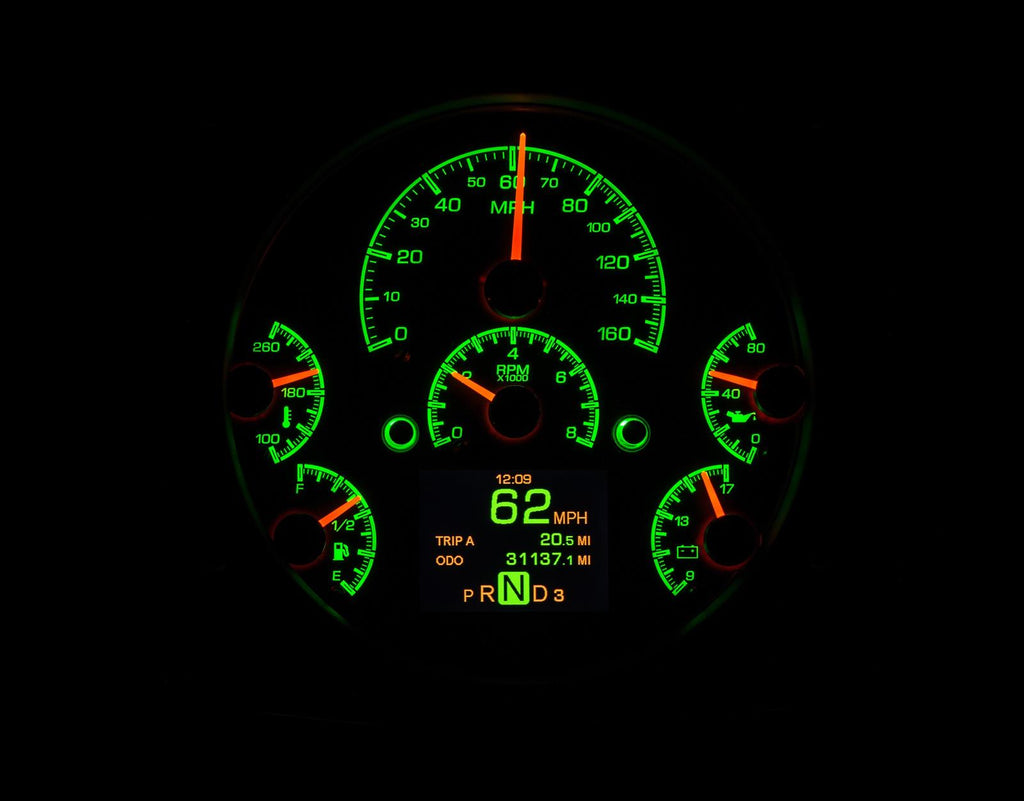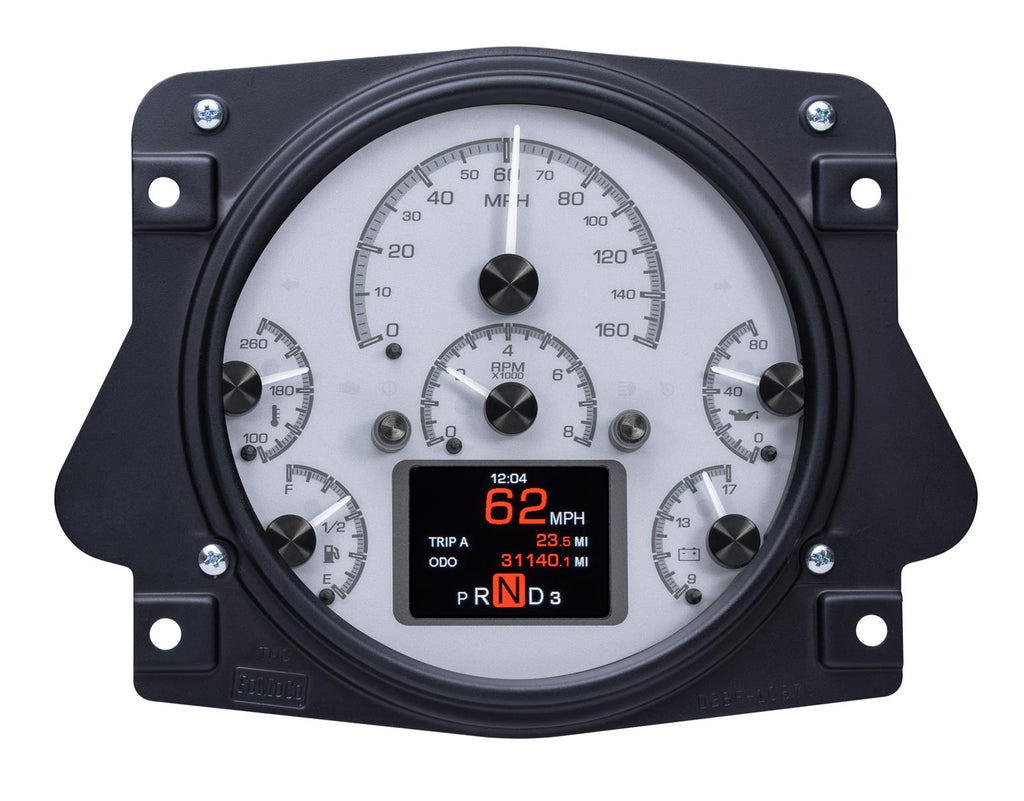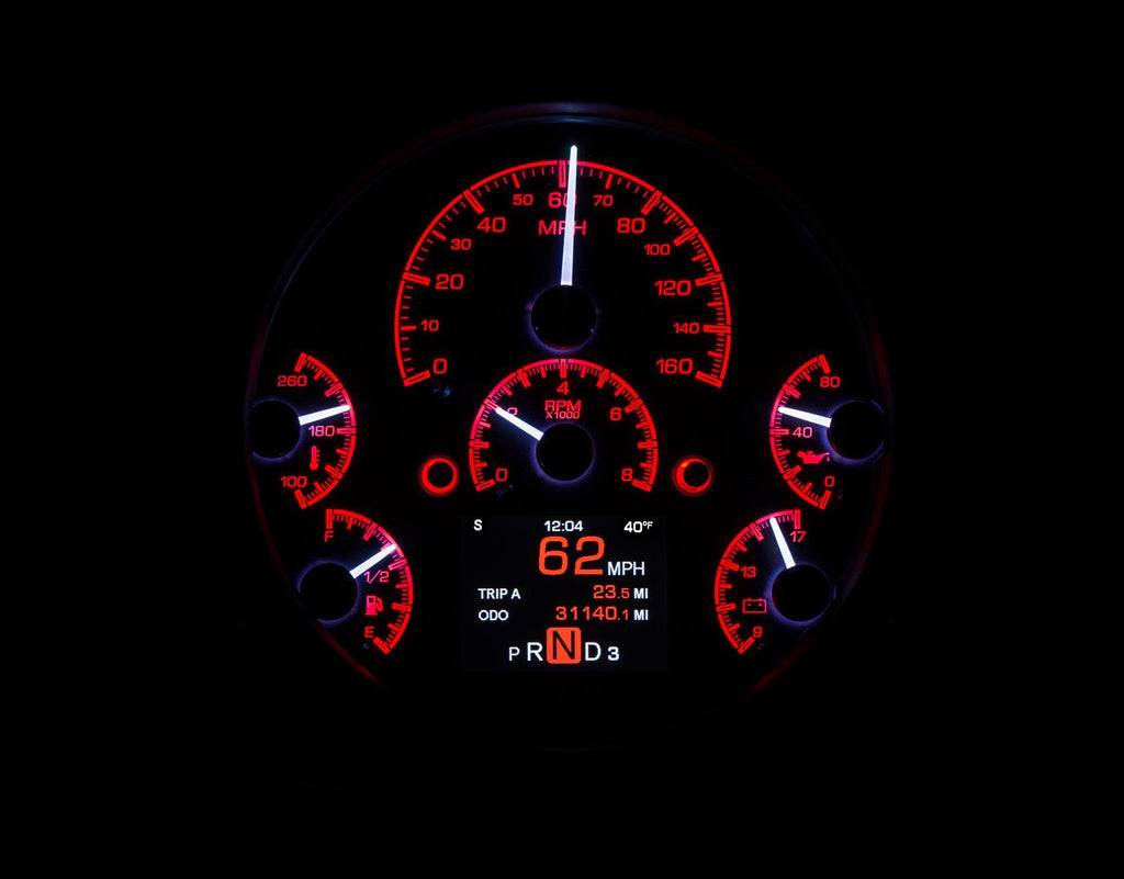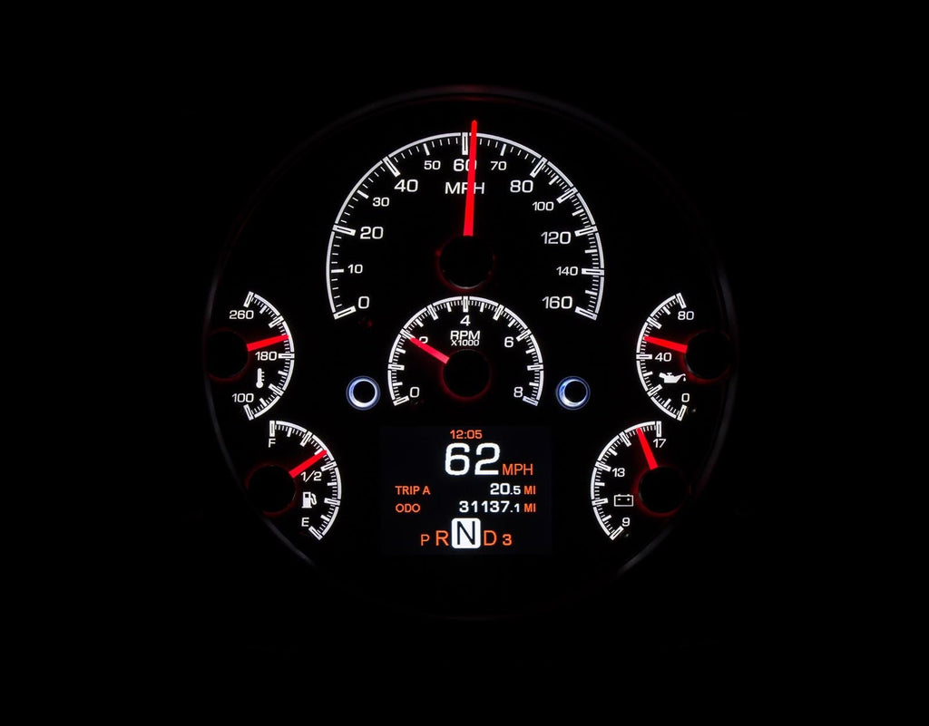 Dakota Digital HDX direct-fit analog gauge systems feature the latest in aftermarket automotive instrumentation technology. They take personalization and usability to a whole new dimension, while retaining your favorite features from the wildly popular VHX-Series, such as LED backlighting for the numbers, tick marks, and dead-faced dash indicators (turn signals, high beam, check engine, cruise control engaged, and parking brake). Illuminated needles and a lifetime warranty are still part of the deal as well. These features add up to clean, easy-to-read instrument systems in all conditions.