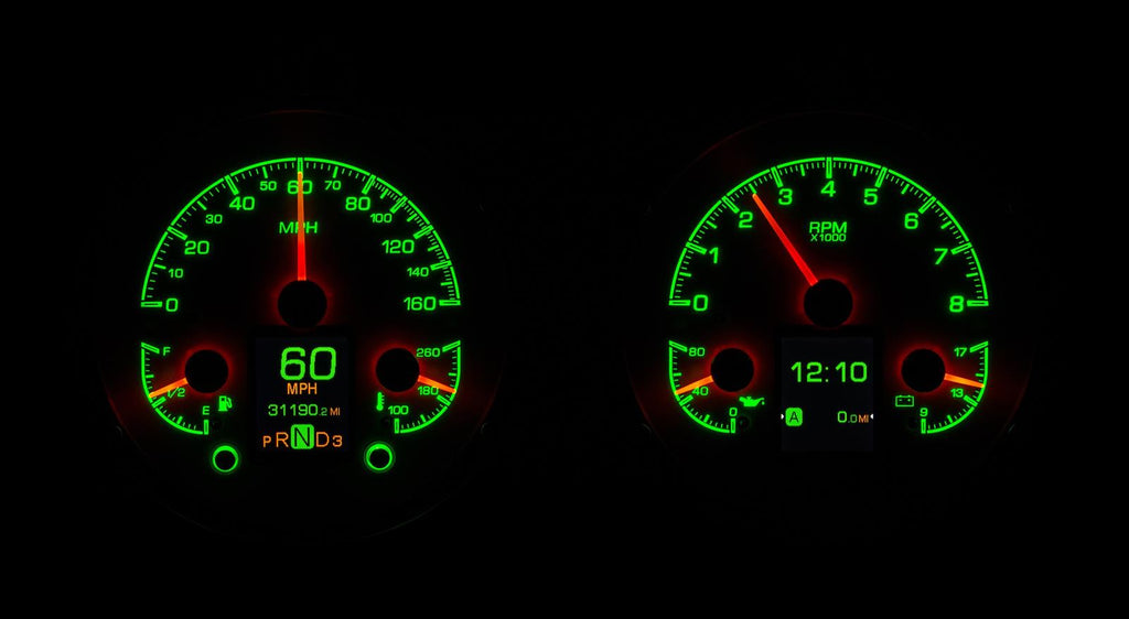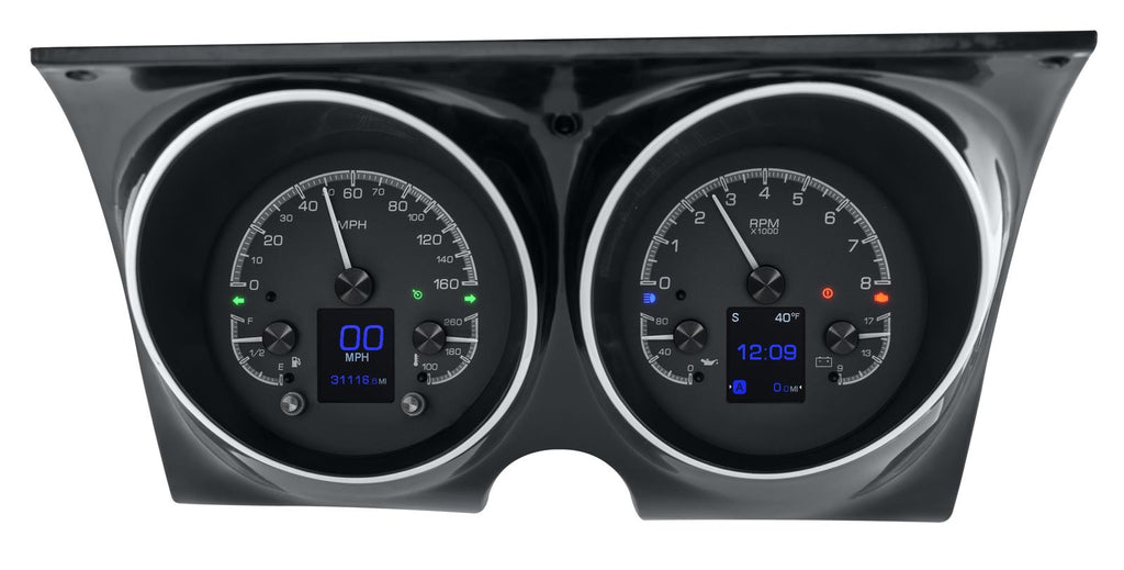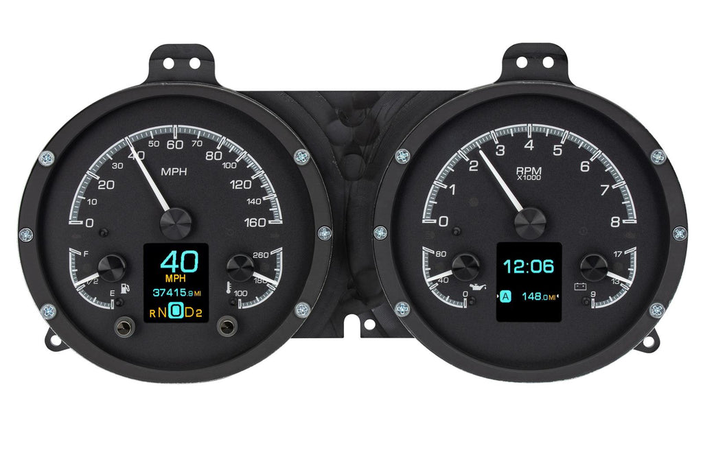 Dakota Digital HDX direct-fit analog gauge systems feature the latest in aftermarket automotive instrumentation technology. They take personalization and usability to a whole new dimension, while retaining your favorite features from the wildly popular VHX-Series, such as LED backlighting for the numbers, tick marks, and dead-faced dash indicators (turn signals, high beam, check engine, cruise control engaged, and parking brake). Illuminated needles and a lifetime warranty are still part of the deal as well. These features add up to clean, easy-to-read instrument systems in all conditions.