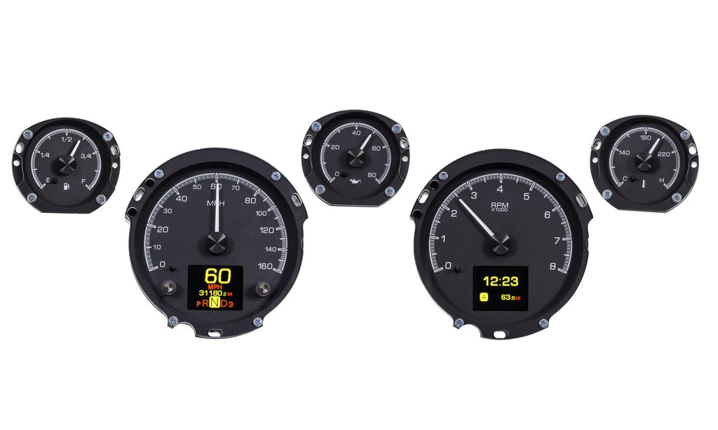 Dakota Digital HDX direct-fit analog gauge systems feature the latest in aftermarket automotive instrumentation technology. They take personalization and usability to a whole new dimension, while retaining your favorite features from the wildly popular VHX-Series, such as LED backlighting for the numbers, tick marks, and dead-faced dash indicators (turn signals, high beam, check engine, cruise control engaged, and parking brake). Illuminated needles and a lifetime warranty are still part of the deal as well. These features add up to clean, easy-to-read instrument systems in all conditions.