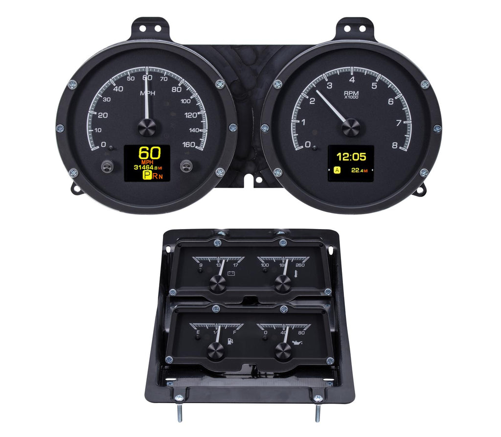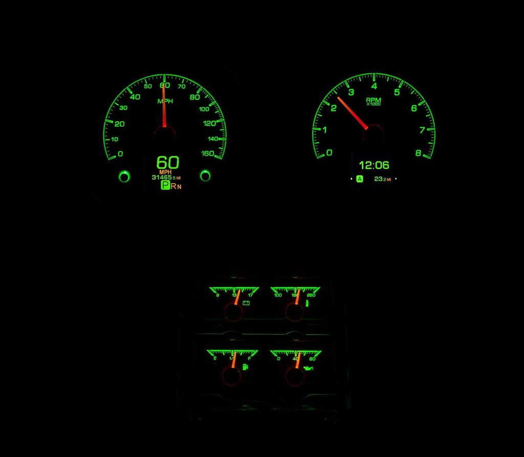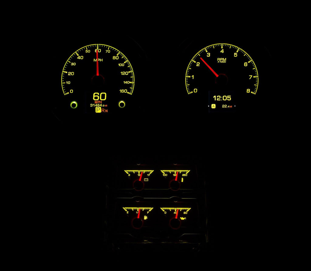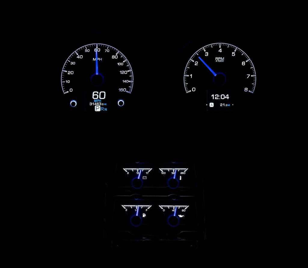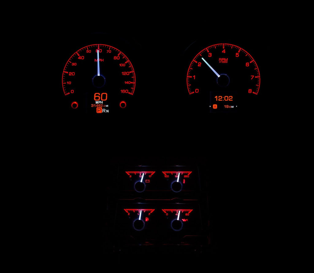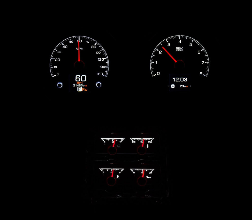 Dakota Digital HDX direct-fit analog gauge systems feature the latest in aftermarket automotive instrumentation technology. They take personalization and usability to a whole new dimension, while retaining your favorite features from the wildly popular VHX-Series, such as LED backlighting for the numbers, tick marks, and dead-faced dash indicators (turn signals, high beam, check engine, cruise control engaged, and parking brake). Illuminated needles and a lifetime warranty are still part of the deal as well. These features add up to clean, easy-to-read instrument systems in all conditions.