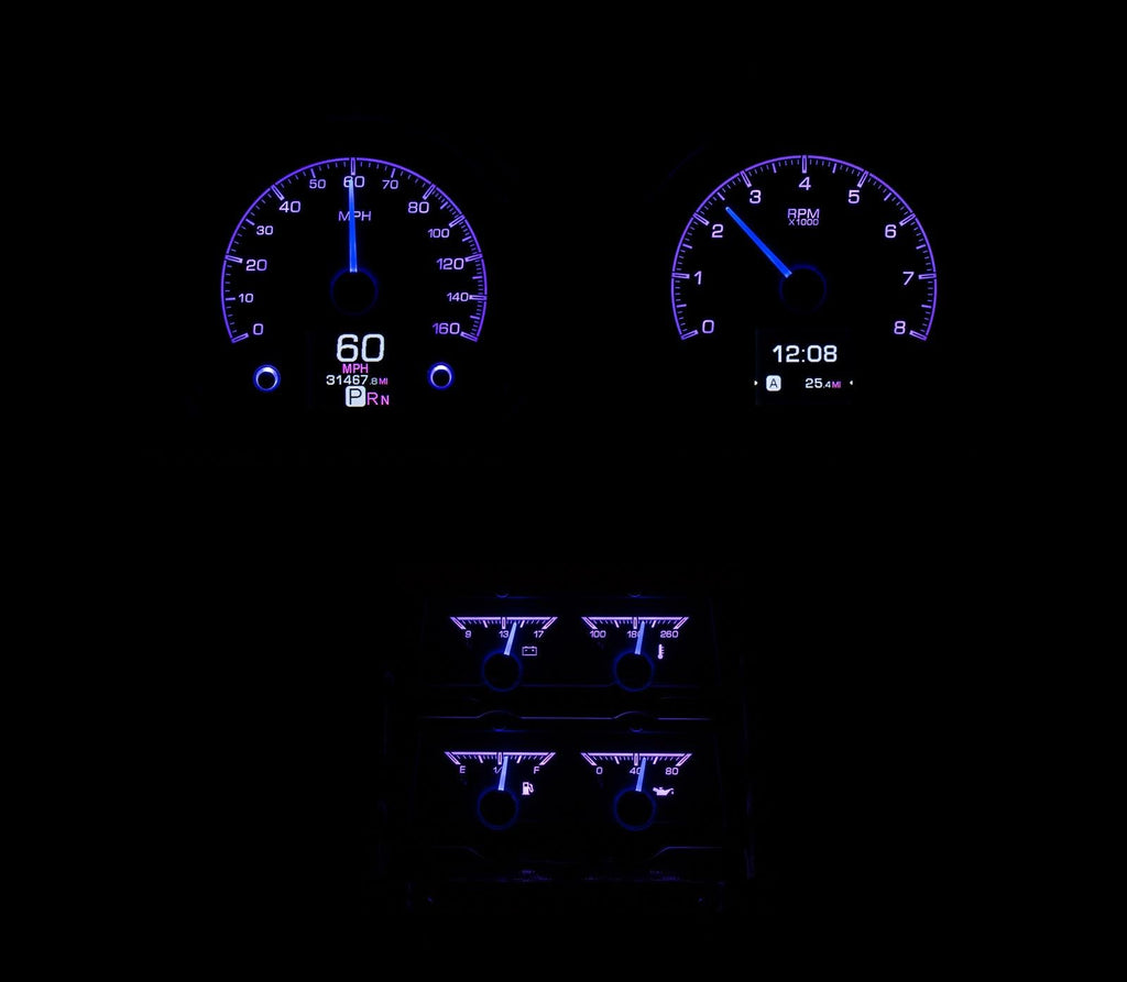 Dakota Digital HDX direct-fit analog gauge systems feature the latest in aftermarket automotive instrumentation technology. They take personalization and usability to a whole new dimension, while retaining your favorite features from the wildly popular VHX-Series, such as LED backlighting for the numbers, tick marks, and dead-faced dash indicators (turn signals, high beam, check engine, cruise control engaged, and parking brake). Illuminated needles and a lifetime warranty are still part of the deal as well. These features add up to clean, easy-to-read instrument systems in all conditions.