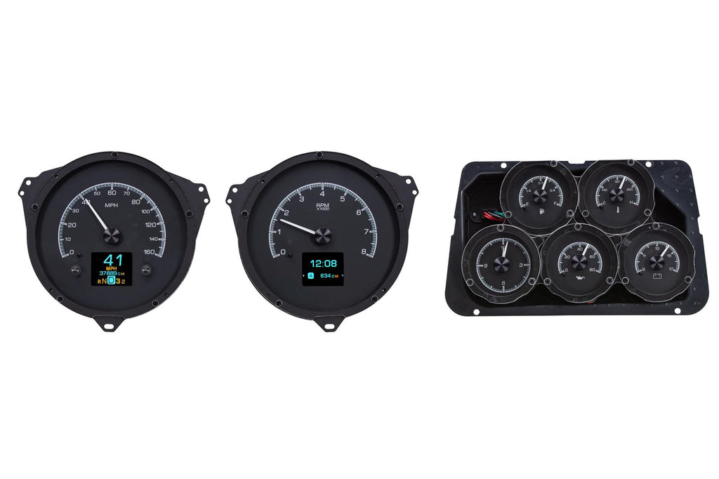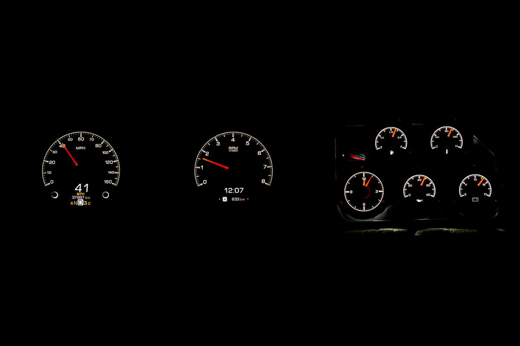 Dakota Digital HDX direct-fit analog gauge systems feature the latest in aftermarket automotive instrumentation technology. They take personalization and usability to a whole new dimension, while retaining your favorite features from the wildly popular VHX-Series, such as LED backlighting for the numbers, tick marks, and dead-faced dash indicators (turn signals, high beam, check engine, cruise control engaged, and parking brake). Illuminated needles and a lifetime warranty are still part of the deal as well. These features add up to clean, easy-to-read instrument systems in all conditions.