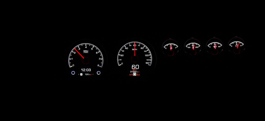 Dakota Digital HDX direct-fit analog gauge systems feature the latest in aftermarket automotive instrumentation technology. They take personalization and usability to a whole new dimension, while retaining your favorite features from the wildly popular VHX-Series, such as LED backlighting for the numbers, tick marks, and dead-faced dash indicators (turn signals, high beam, check engine, cruise control engaged, and parking brake). Illuminated needles and a lifetime warranty are still part of the deal as well. These features add up to clean, easy-to-read instrument systems in all conditions.