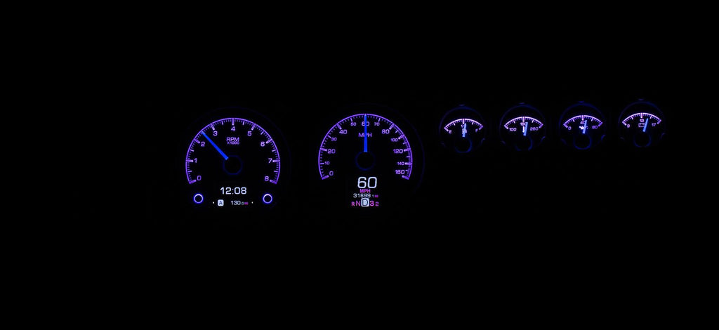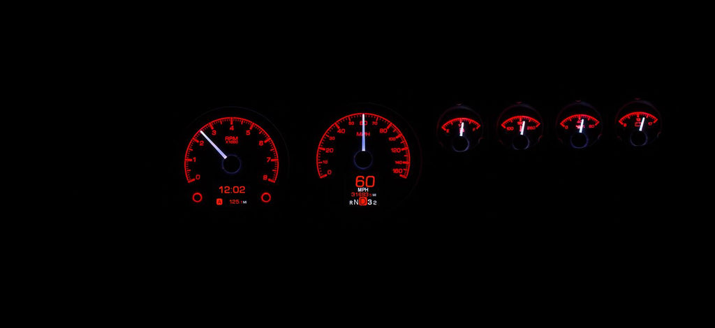 Dakota Digital HDX direct-fit analog gauge systems feature the latest in aftermarket automotive instrumentation technology. They take personalization and usability to a whole new dimension, while retaining your favorite features from the wildly popular VHX-Series, such as LED backlighting for the numbers, tick marks, and dead-faced dash indicators (turn signals, high beam, check engine, cruise control engaged, and parking brake). Illuminated needles and a lifetime warranty are still part of the deal as well. These features add up to clean, easy-to-read instrument systems in all conditions.