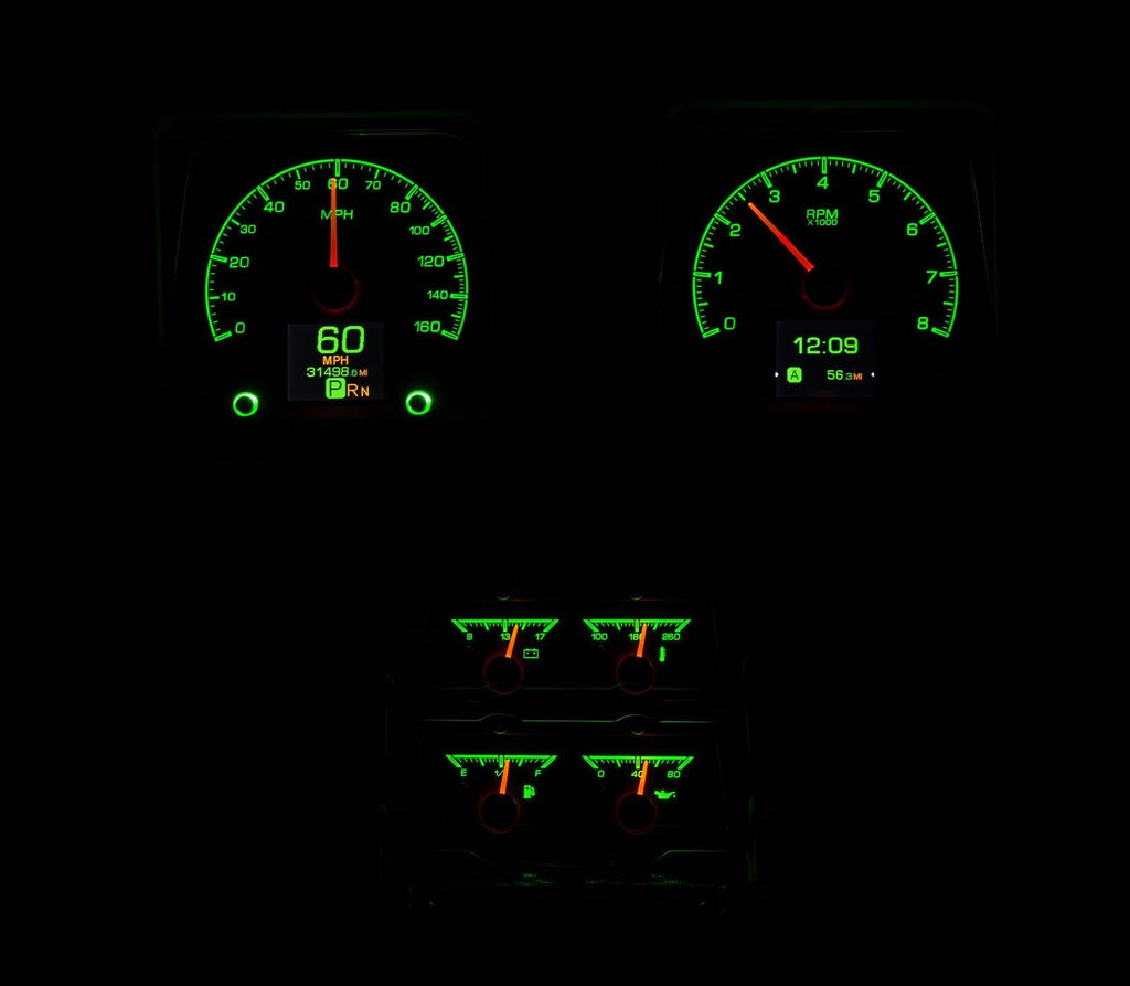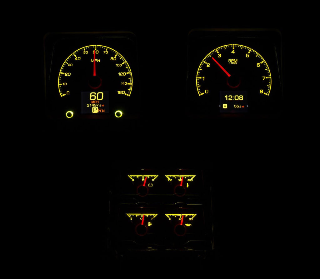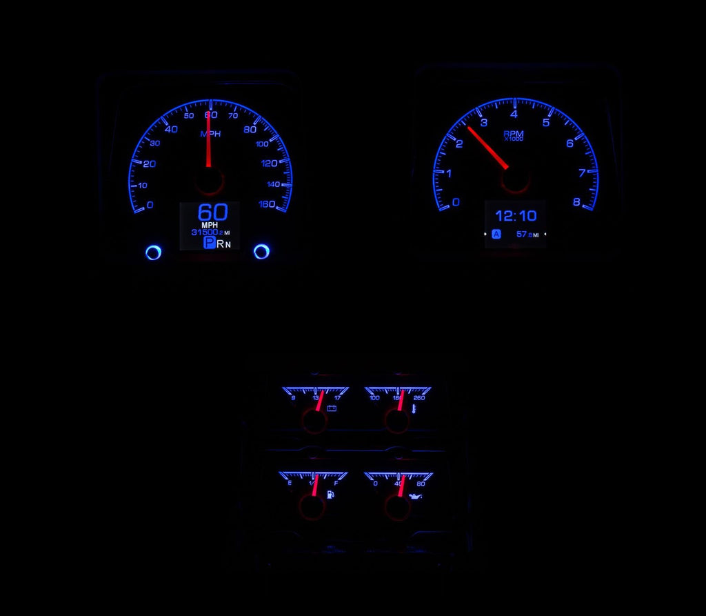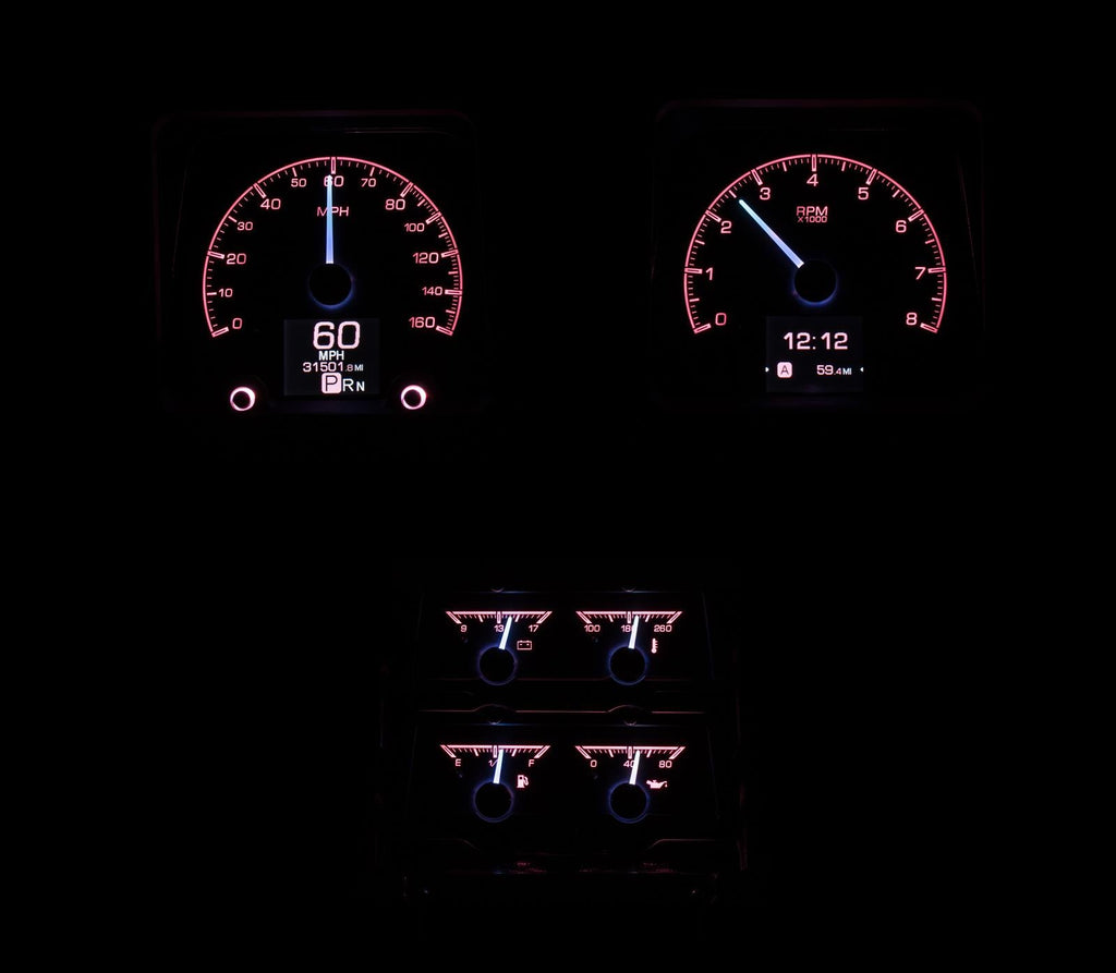 Dakota Digital HDX direct-fit analog gauge systems feature the latest in aftermarket automotive instrumentation technology. They take personalization and usability to a whole new dimension, while retaining your favorite features from the wildly popular VHX-Series, such as LED backlighting for the numbers, tick marks, and dead-faced dash indicators (turn signals, high beam, check engine, cruise control engaged, and parking brake). Illuminated needles and a lifetime warranty are still part of the deal as well. These features add up to clean, easy-to-read instrument systems in all conditions.