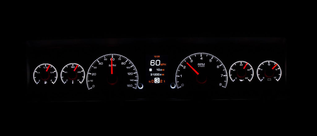 Dakota Digital HDX direct-fit analog gauge systems feature the latest in aftermarket automotive instrumentation technology. They take personalization and usability to a whole new dimension, while retaining your favorite features from the wildly popular VHX-Series, such as LED backlighting for the numbers, tick marks, and dead-faced dash indicators (turn signals, high beam, check engine, cruise control engaged, and parking brake). Illuminated needles and a lifetime warranty are still part of the deal as well. These features add up to clean, easy-to-read instrument systems in all conditions.