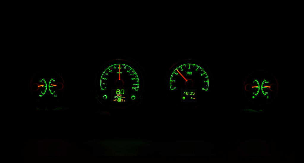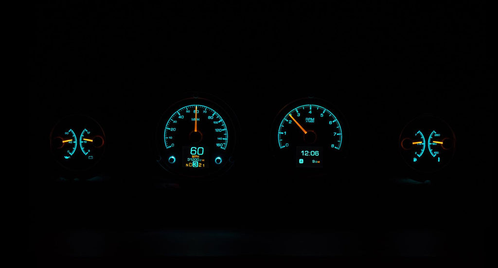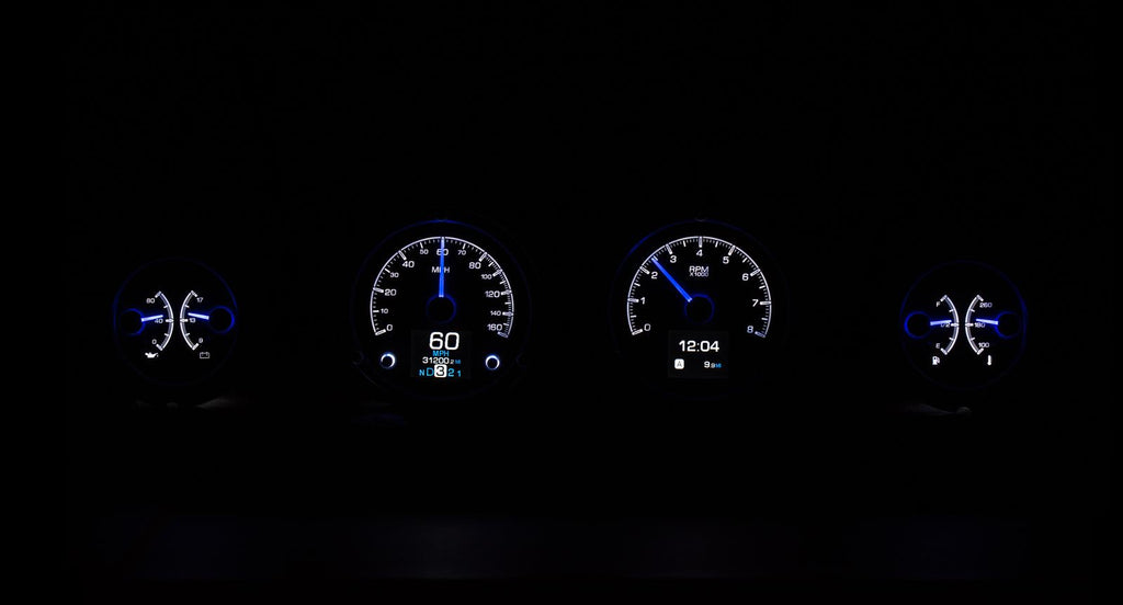 Dakota Digital HDX direct-fit analog gauge systems feature the latest in aftermarket automotive instrumentation technology. They take personalization and usability to a whole new dimension, while retaining your favorite features from the wildly popular VHX-Series, such as LED backlighting for the numbers, tick marks, and dead-faced dash indicators (turn signals, high beam, check engine, cruise control engaged, and parking brake). Illuminated needles and a lifetime warranty are still part of the deal as well. These features add up to clean, easy-to-read instrument systems in all conditions.