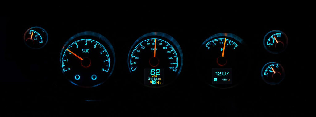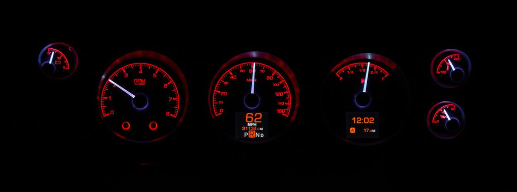 Dakota Digital HDX direct-fit analog gauge systems feature the latest in aftermarket automotive instrumentation technology. They take personalization and usability to a whole new dimension, while retaining your favorite features from the wildly popular VHX-Series, such as LED backlighting for the numbers, tick marks, and dead-faced dash indicators (turn signals, high beam, check engine, cruise control engaged, and parking brake). Illuminated needles and a lifetime warranty are still part of the deal as well. These features add up to clean, easy-to-read instrument systems in all conditions.