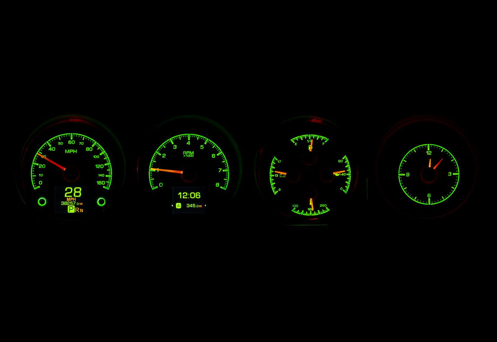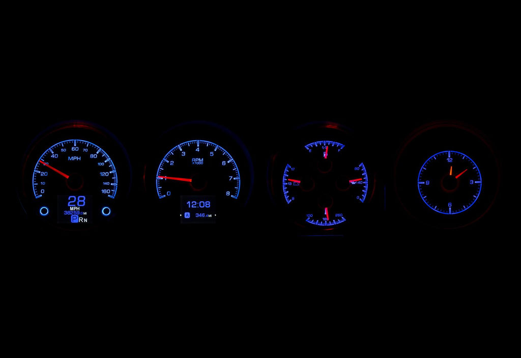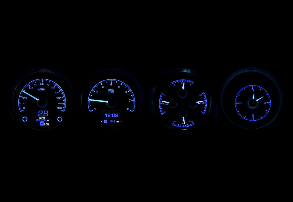 Dakota Digital HDX direct-fit analog gauge systems feature the latest in aftermarket automotive instrumentation technology. They take personalization and usability to a whole new dimension, while retaining your favorite features from the wildly popular VHX-Series, such as LED backlighting for the numbers, tick marks, and dead-faced dash indicators (turn signals, high beam, check engine, cruise control engaged, and parking brake). Illuminated needles and a lifetime warranty are still part of the deal as well. These features add up to clean, easy-to-read instrument systems in all conditions.