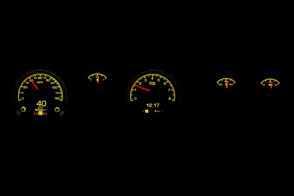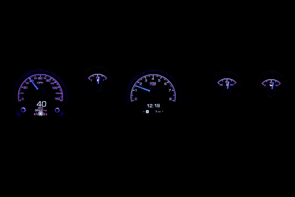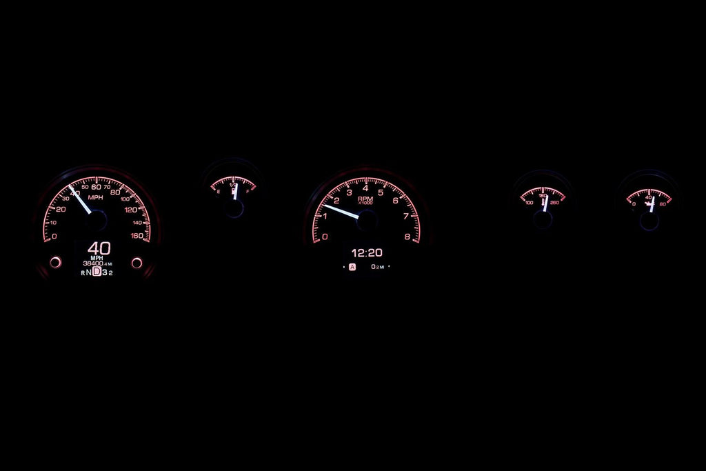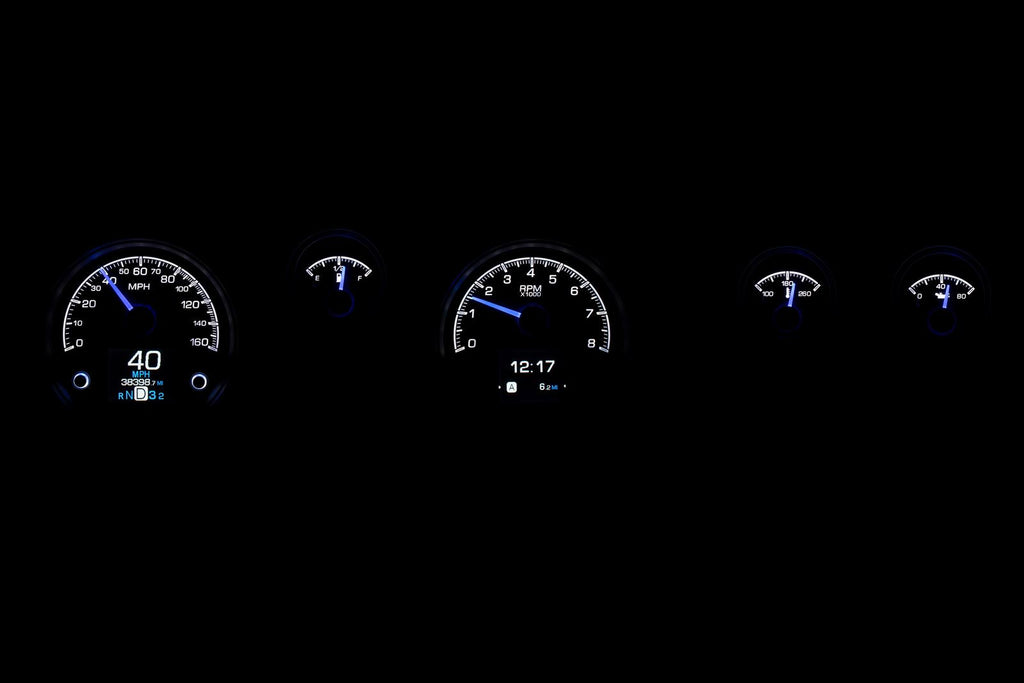 Dakota Digital HDX direct-fit analog gauge systems feature the latest in aftermarket automotive instrumentation technology. They take personalization and usability to a whole new dimension, while retaining your favorite features from the wildly popular VHX-Series, such as LED backlighting for the numbers, tick marks, and dead-faced dash indicators (turn signals, high beam, check engine, cruise control engaged, and parking brake). Illuminated needles and a lifetime warranty are still part of the deal as well. These features add up to clean, easy-to-read instrument systems in all conditions.