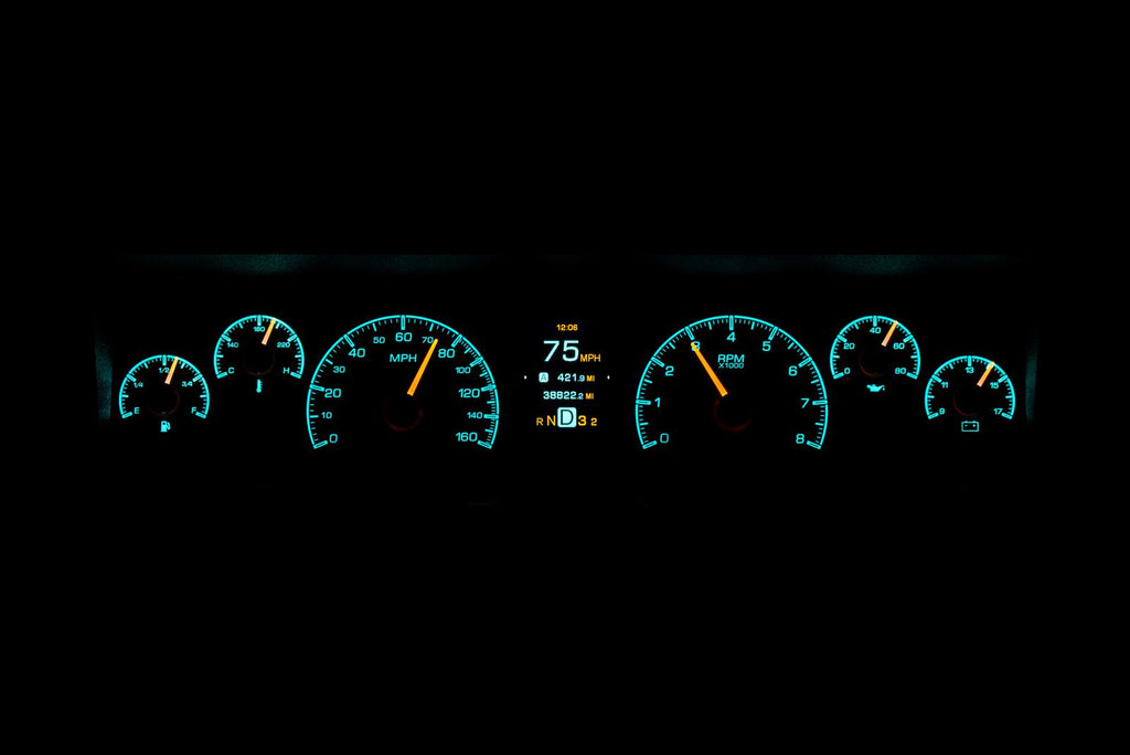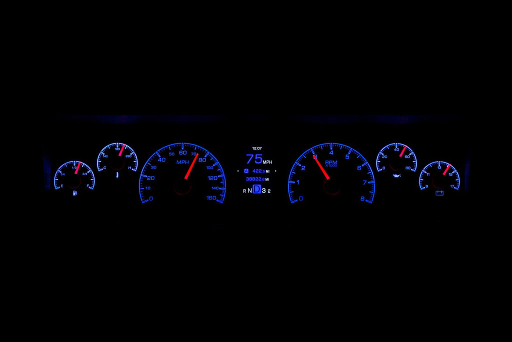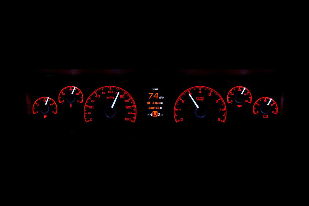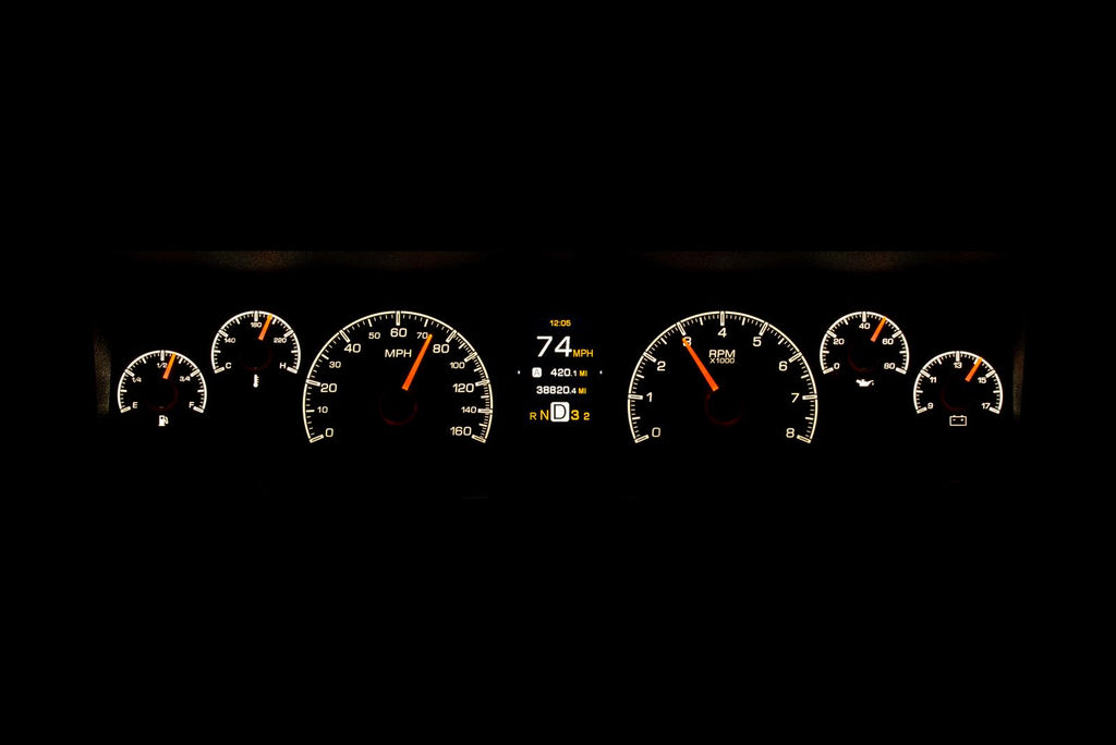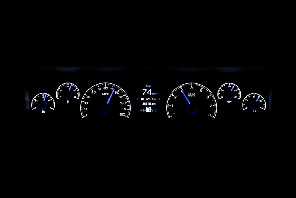 Dakota Digital HDX direct-fit analog gauge systems feature the latest in aftermarket automotive instrumentation technology. They take personalization and usability to a whole new dimension, while retaining your favorite features from the wildly popular VHX-Series, such as LED backlighting for the numbers, tick marks, and dead-faced dash indicators (turn signals, high beam, check engine, cruise control engaged, and parking brake). Illuminated needles and a lifetime warranty are still part of the deal as well. These features add up to clean, easy-to-read instrument systems in all conditions.
