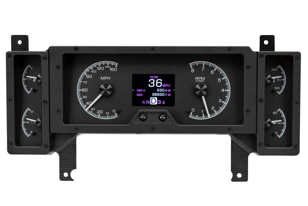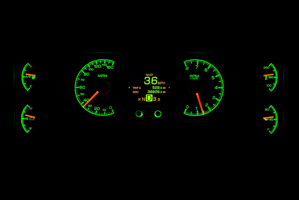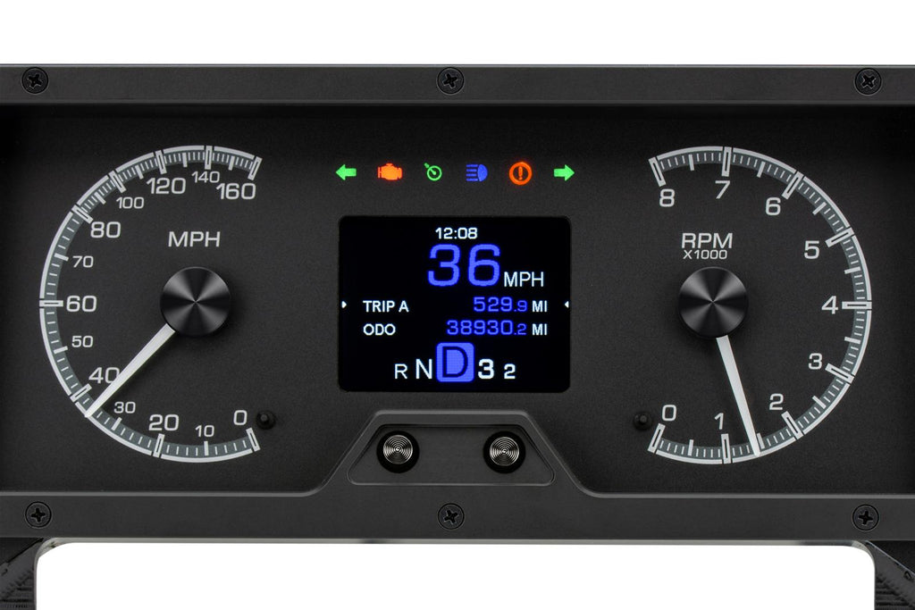 Dakota Digital HDX direct-fit analog gauge systems feature the latest in aftermarket automotive instrumentation technology. They take personalization and usability to a whole new dimension, while retaining your favorite features from the wildly popular VHX-Series, such as LED backlighting for the numbers, tick marks, and dead-faced dash indicators (turn signals, high beam, check engine, cruise control engaged, and parking brake). Illuminated needles and a lifetime warranty are still part of the deal as well. These features add up to clean, easy-to-read instrument systems in all conditions.